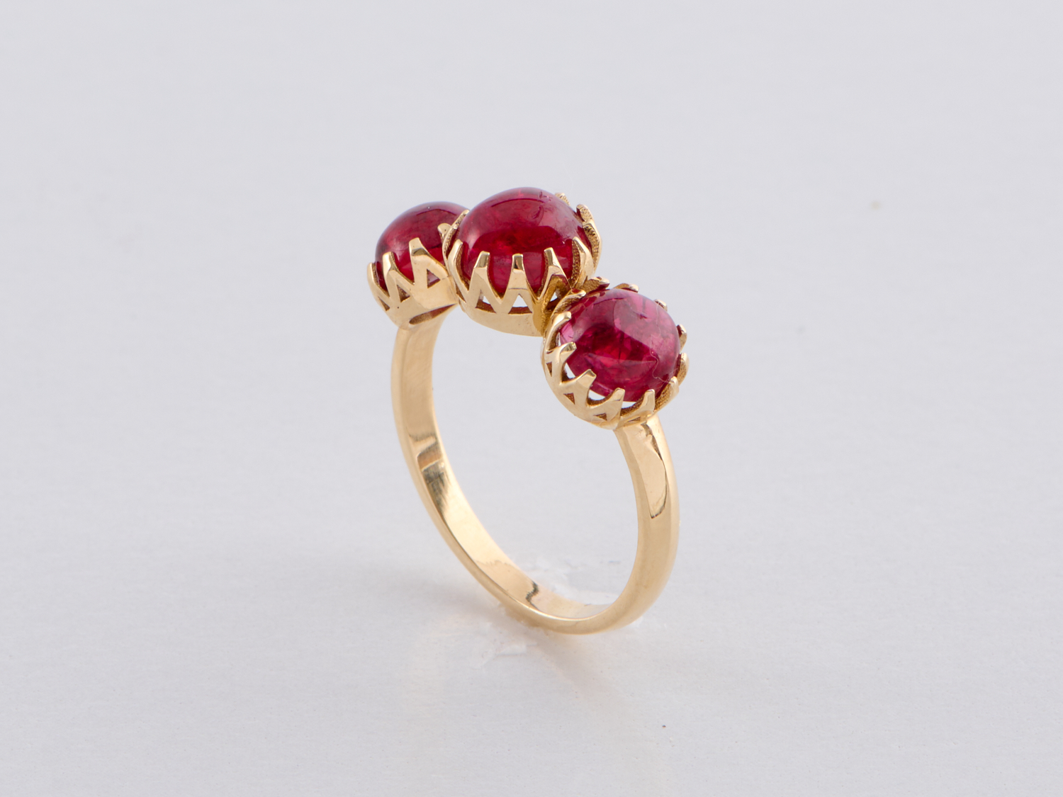 A BURMESE SPINEL SET RING IN 14CT GOLD, SIZE M-N, 3.4GMS