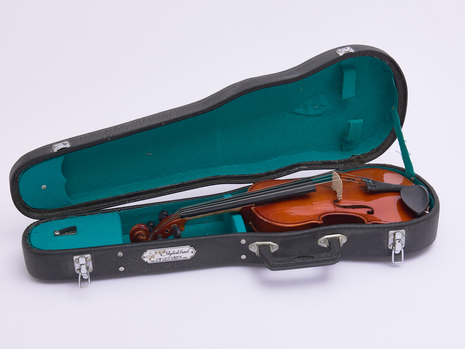 A SMALL VIOLIN, CASED (A/F) L.48CM, LEONARD JOEL LOCAL DELIVERY: SMALL