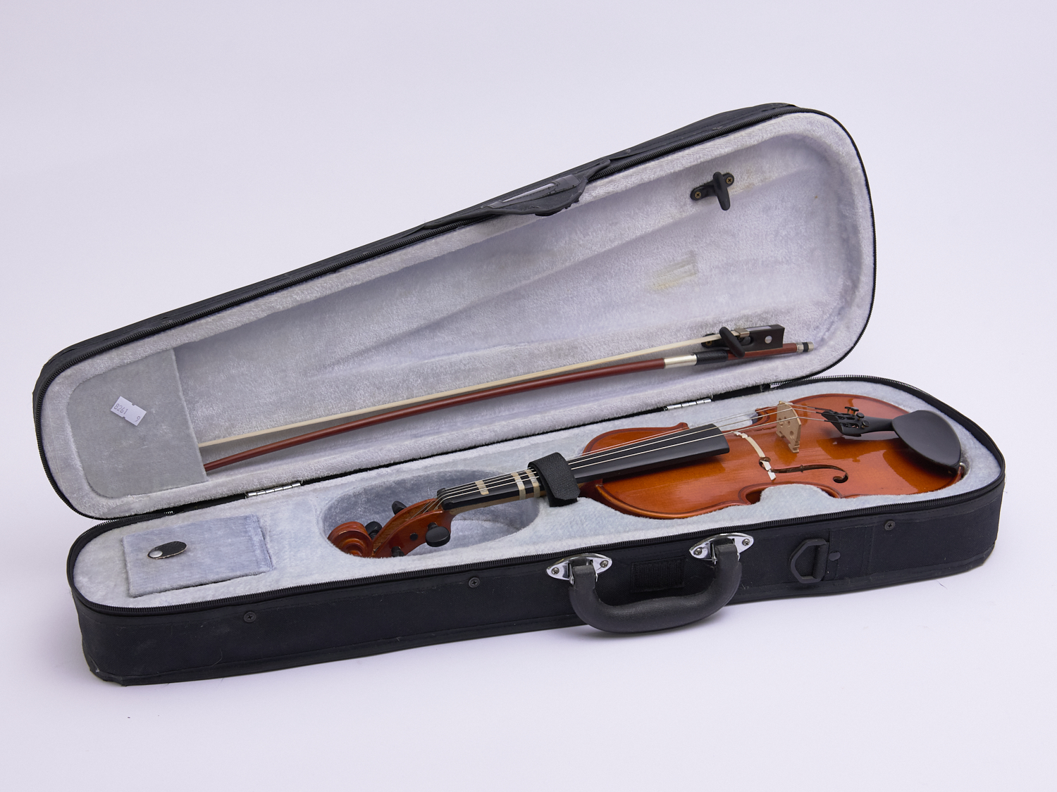 A CASED VIOLIN (A/F) L.67CM, LEONARD JOEL LOCAL DELIVERY: MEDIUM