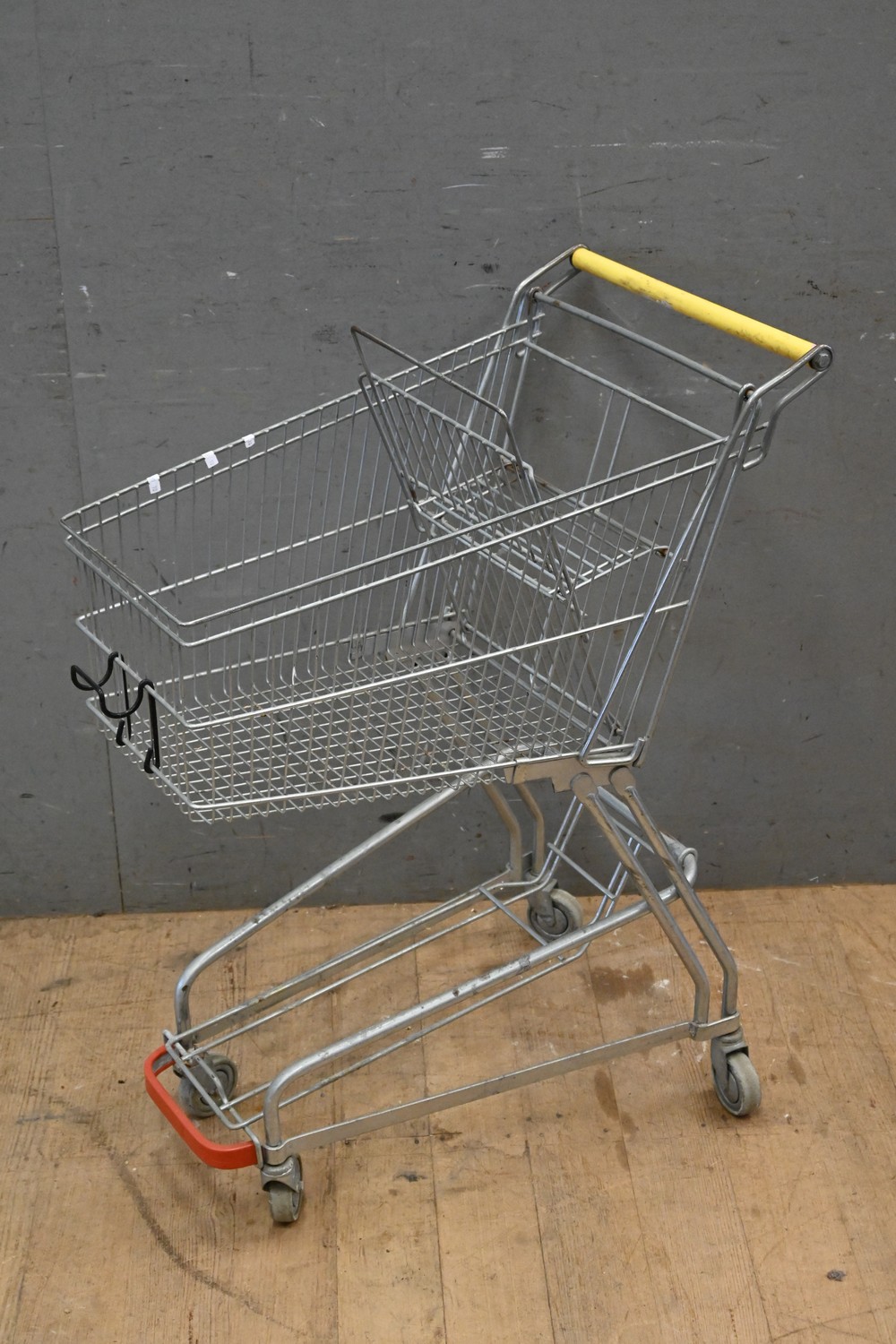 A PETITE GREEN GROCER'S TROLLEY (90H X 69W X 42D CM) (LEONARD JOEL DELIVERY SIZE: MEDIUM)