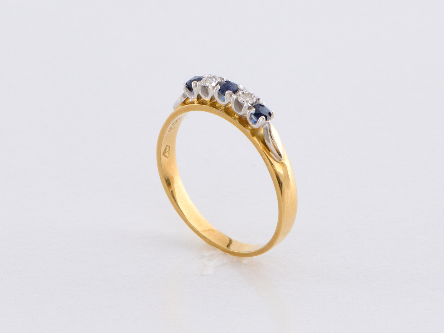 A SAPPHIRE AND DIAMOND RING IN 18CT GOLD, RING SIZE Q/R, 3.25GMS