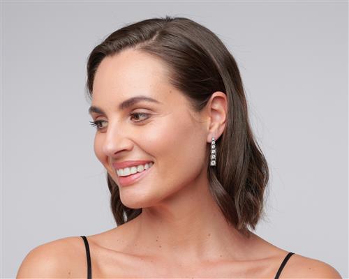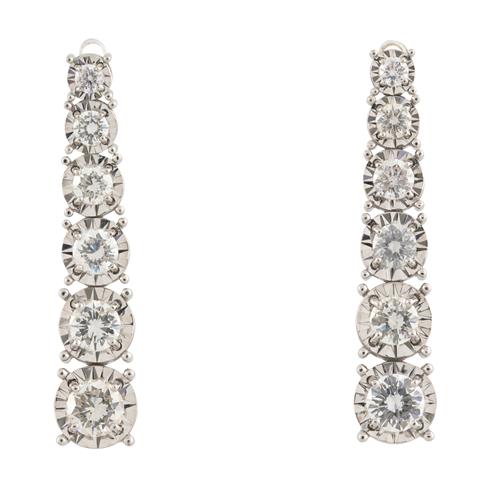A PAIR OF EMERALD AND DIAMOND EARRINGS IN 18CT WHITE GOLD, EACH EARRING COMPRISING A DOUBLE EMERALD-CUT EMERALD DROP TOGETHER WEIGHI...