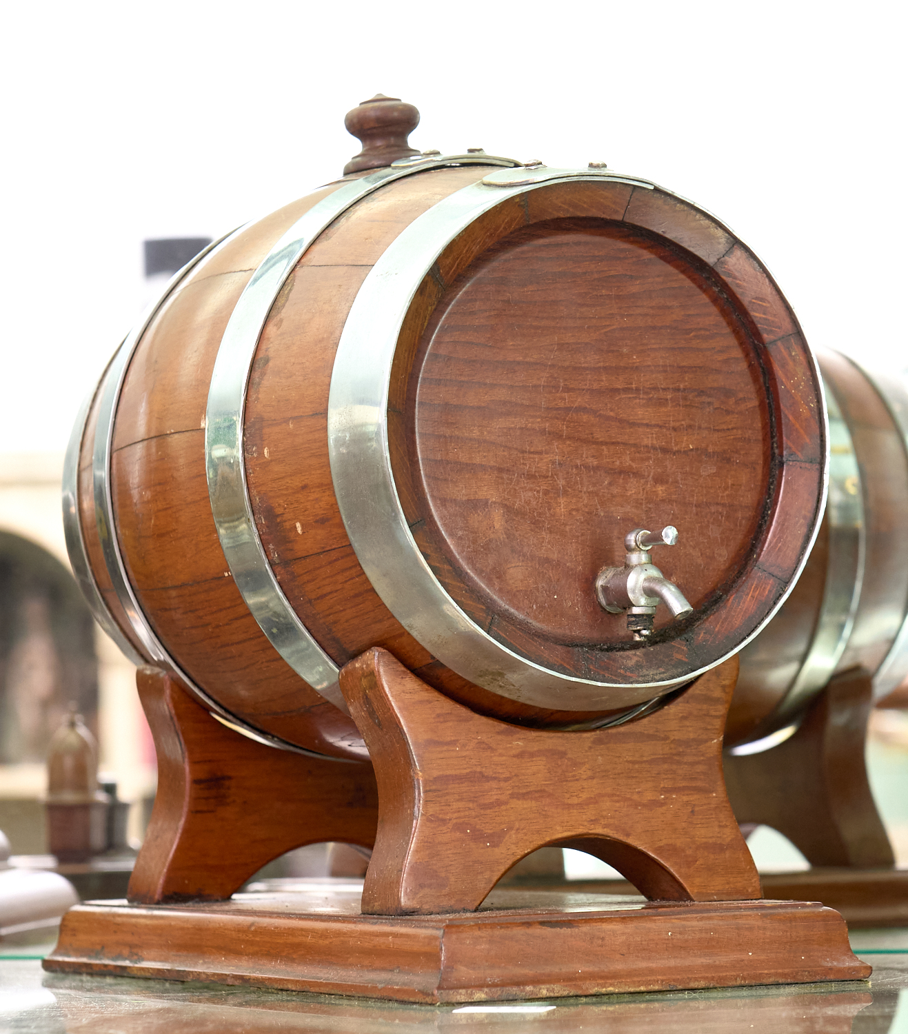 A WHISKEY BARRELL ON STAND H.28.5CM, LEONARD JOEL LOCAL DELIVERY: MEDIUM