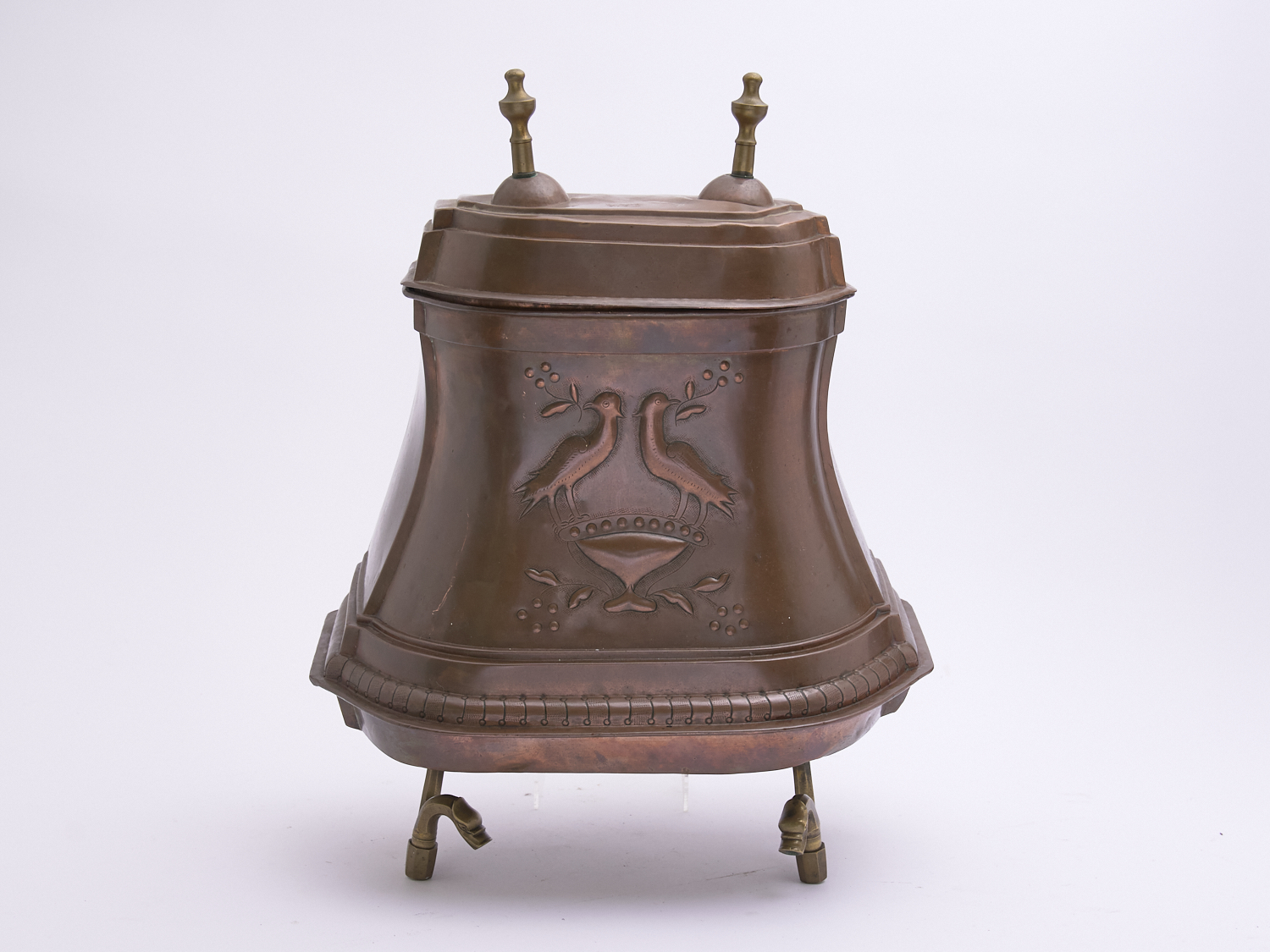 A LARGE 19TH-CENTURY FRENCH COPPER DOUBLE TAP WALL MOUNT WATER DISPENSER H.52CM, LEONARD JOEL LOCAL DELIVERY: MEDIUM