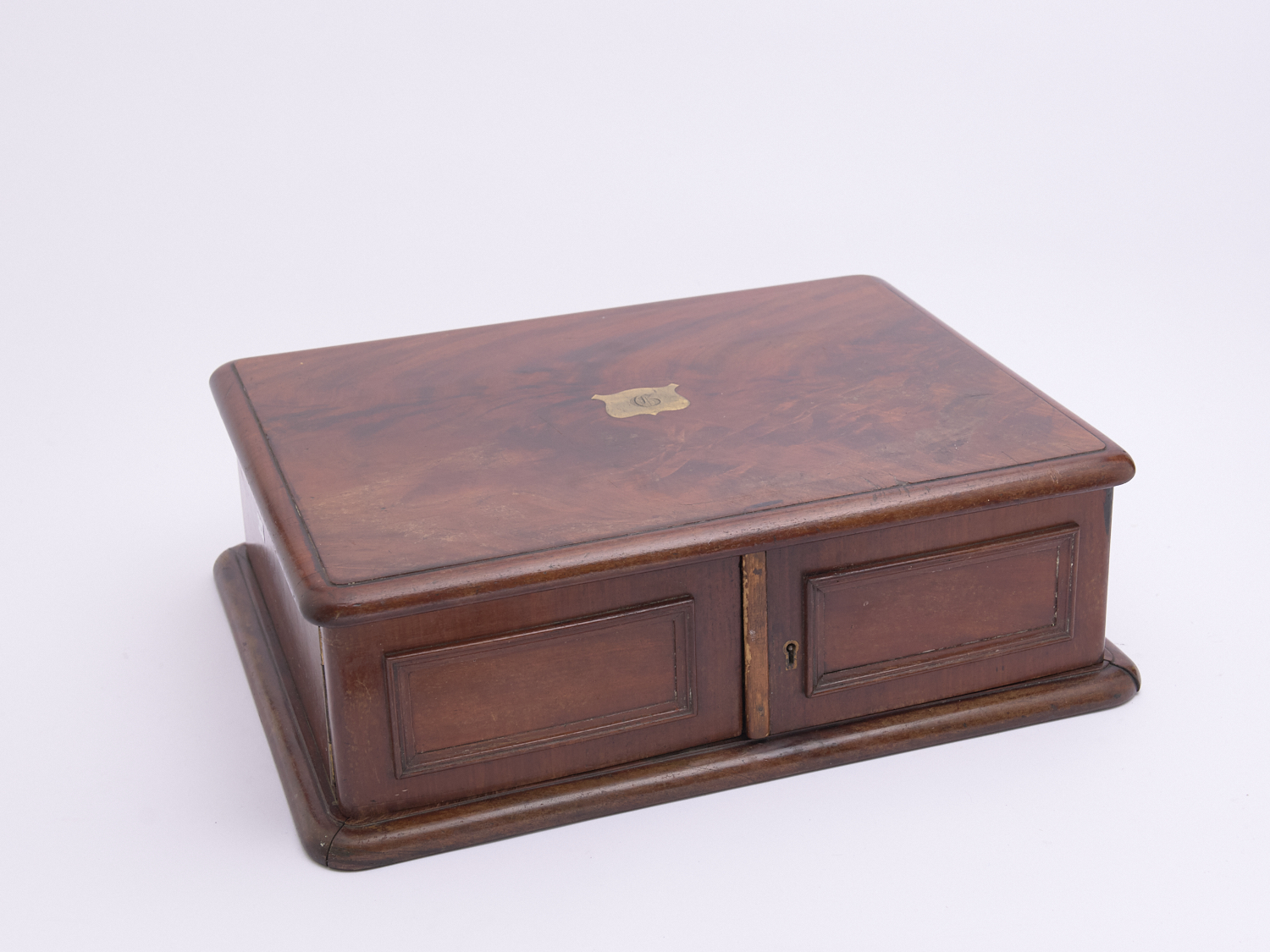 A WALNUT TWO DRAWER CUTLERY CABINET W.48CM, LEONARD JOEL LOCAL DELIVERY: MEDIUM
