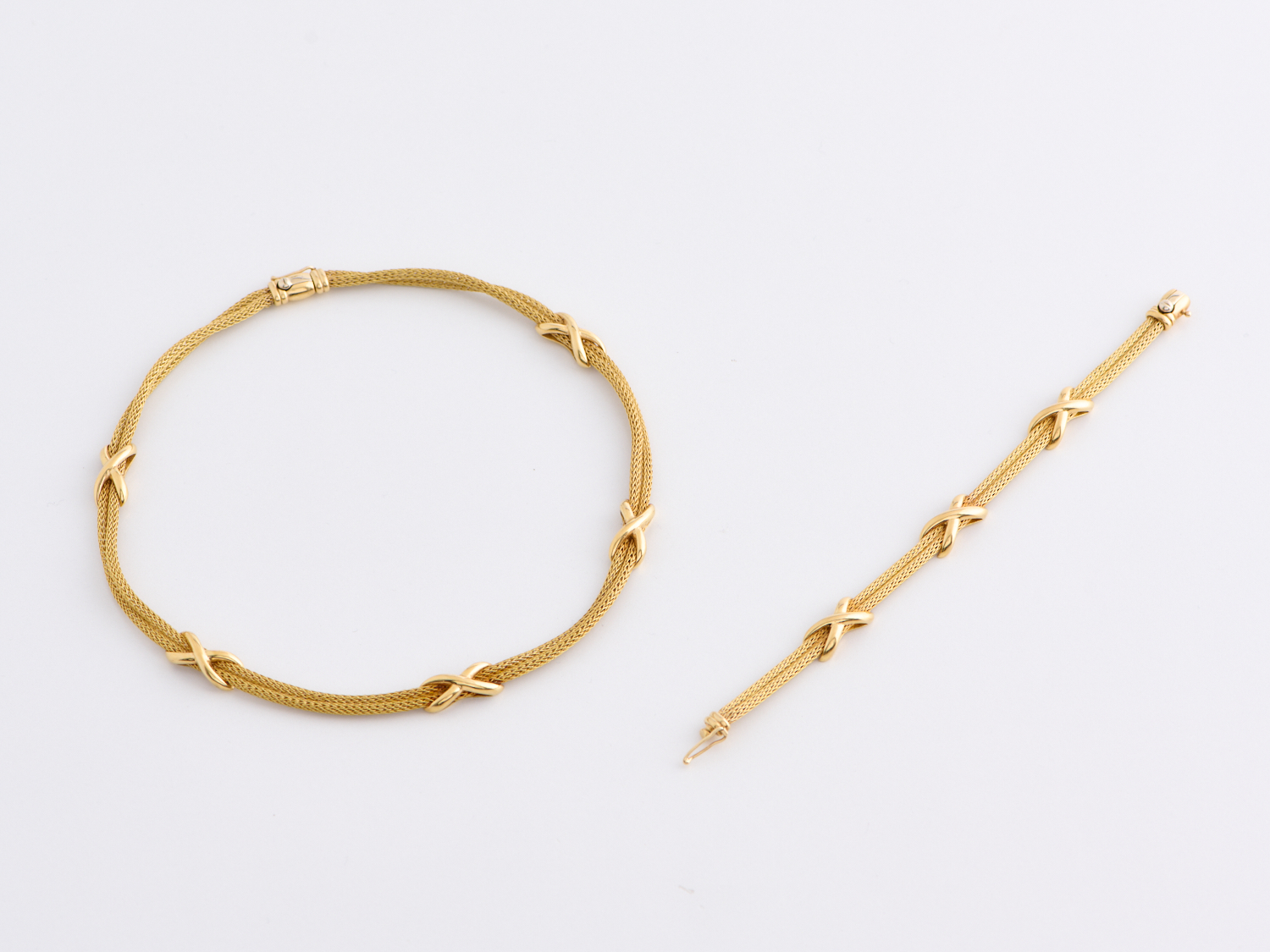 AT ITALIAN NECKLACE AND BRACELET SUITE IN 18CT GOLD, NECKLACE 410MM, BRACELET 170MM, 59.3GMS