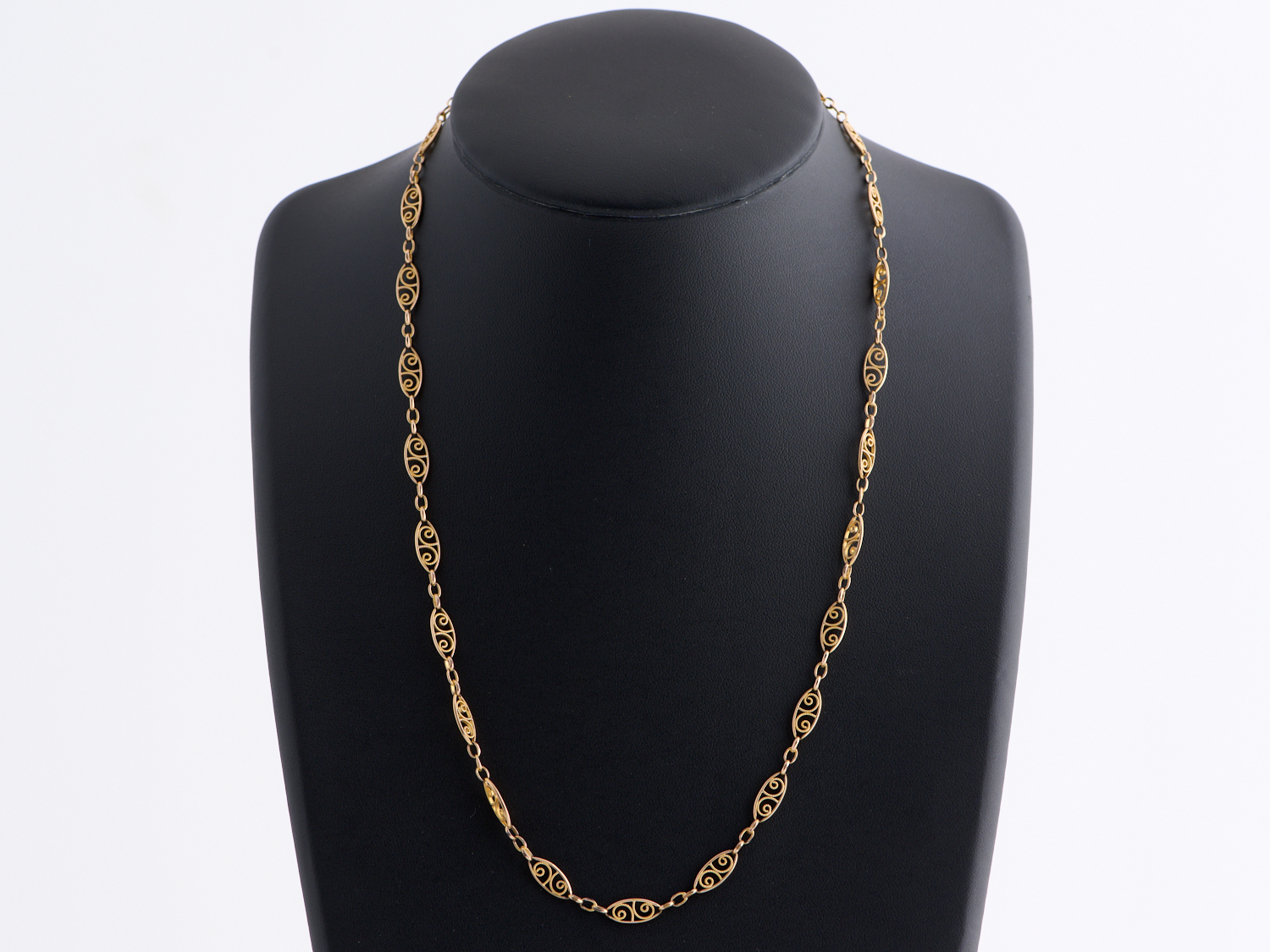 A FANCY LINK NECKLACE IN 9CT ROLLED GOLD, LENGTH 530MM, 7.6GMS