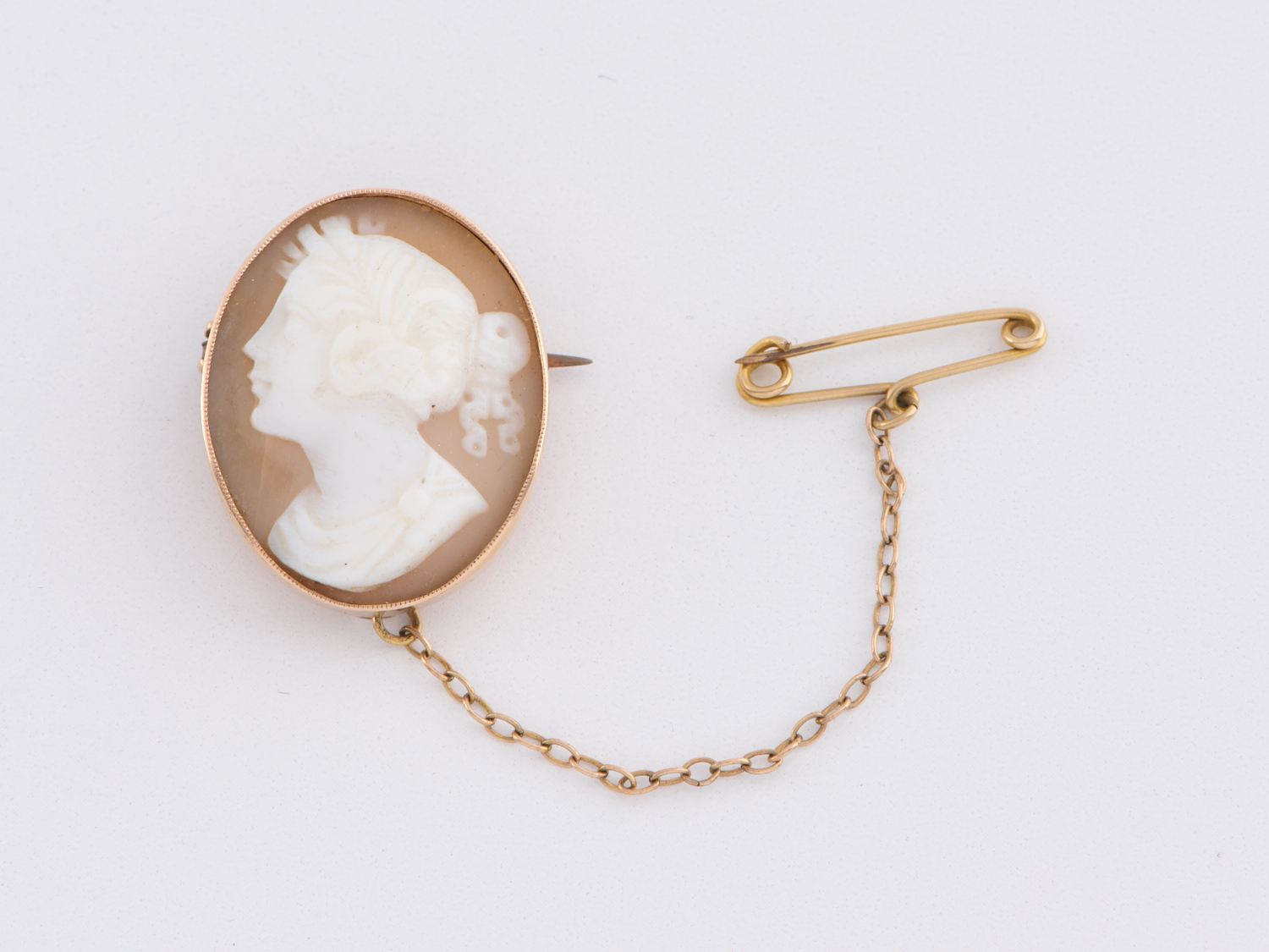 A CAMEO BROOCH IN 15CT GOLD, MEASURING APPROXIMATELY 26 X 21MM, 5.5GMS