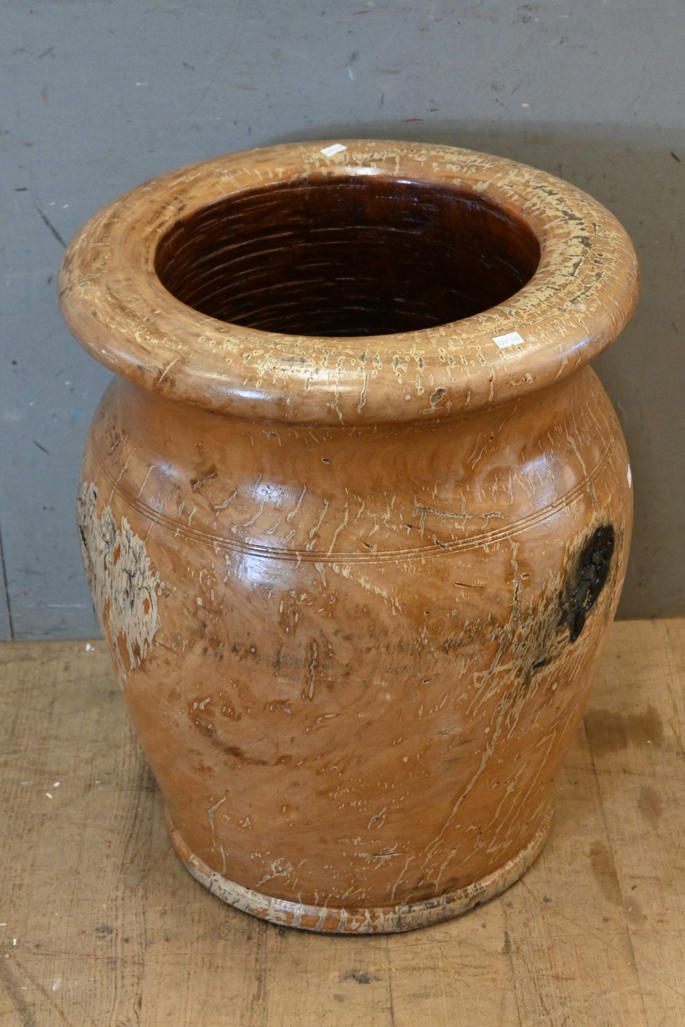 A LARGE NATURAL BURL WOOD CARVED PLANTER (A/F) (60H X 50D CM) (PLEASE NOTE THIS HEAVY ITEM MUST BE REMOVED BY CLIENTS OR CARRIERS AT THE CUSTOMERS EXPENSE. LEONARD JOEL STAFF CANNOT ASSIST CARRYING THIS ITEM)