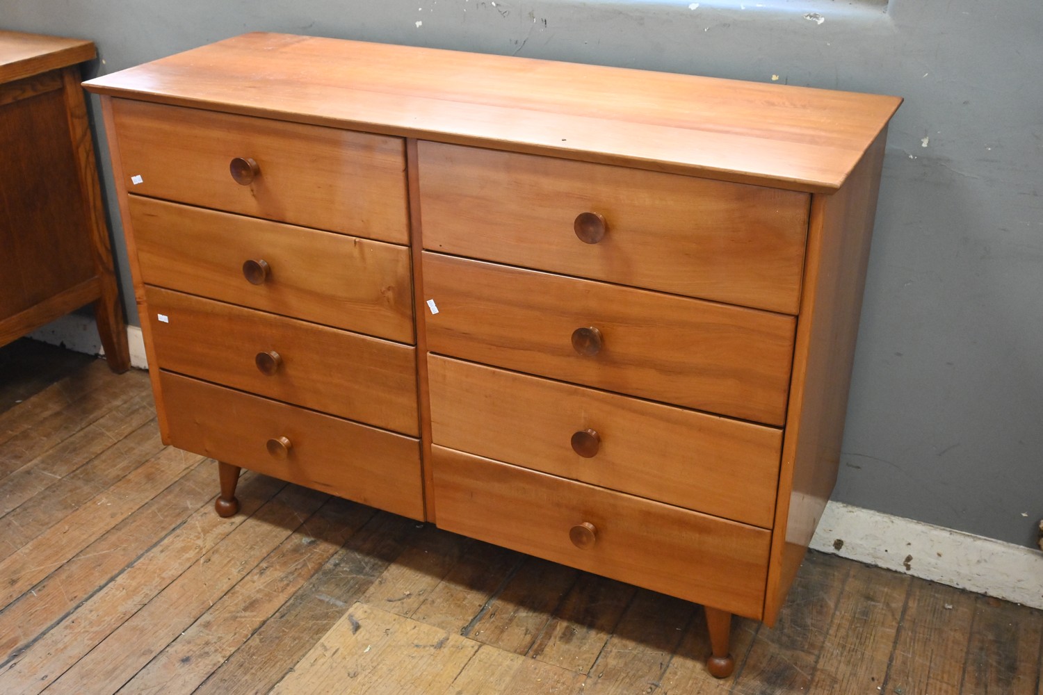 A MID CENTURY MYRTLE CHEST OF DRAWERS (A/F) (84H X 120W X 44D CM) (LEONARD JOEL DELIVERY SIZE: X-LARGE)