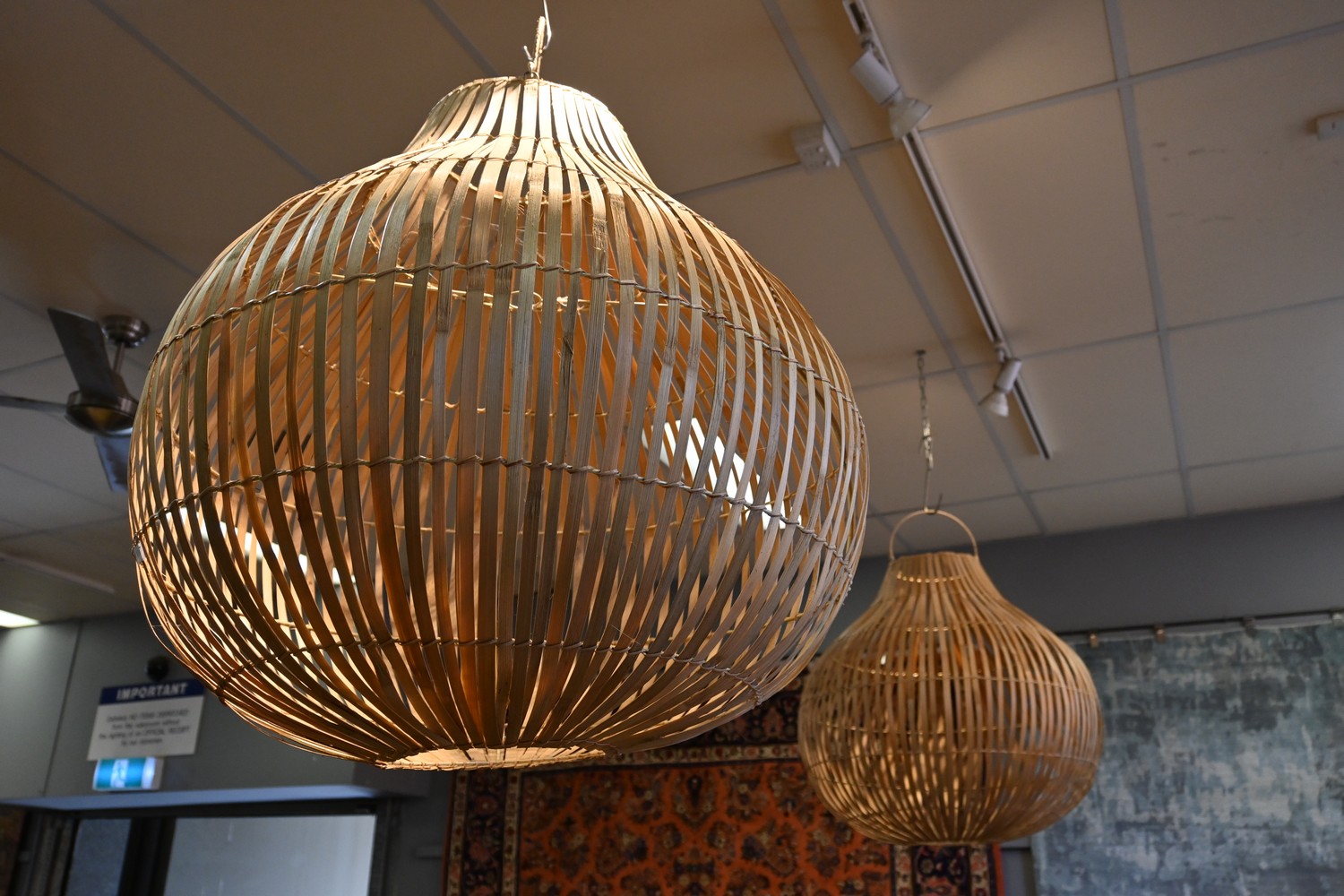 TWO LARGE RATTAN LIGHT SHADES (100H X 90D CM) (LEONARD JOEL DELIVERY SIZE: LARGE)