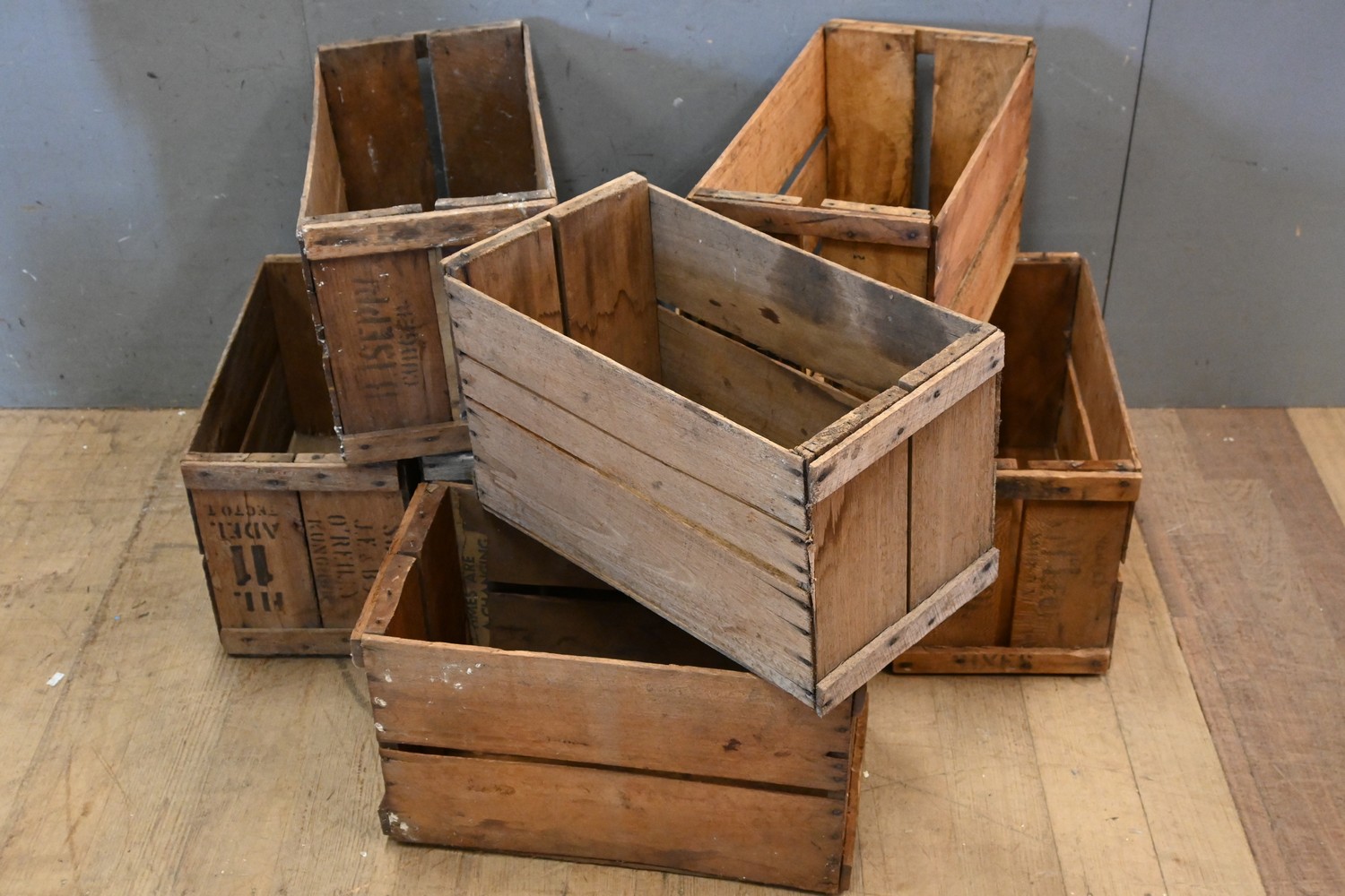 A COLLECTION OF TIMBER FRUIT CRATES (A/F) ( 29H X 52W X 28D CM) (LEONARD JOEL DELIVERY SIZE: LARGE)