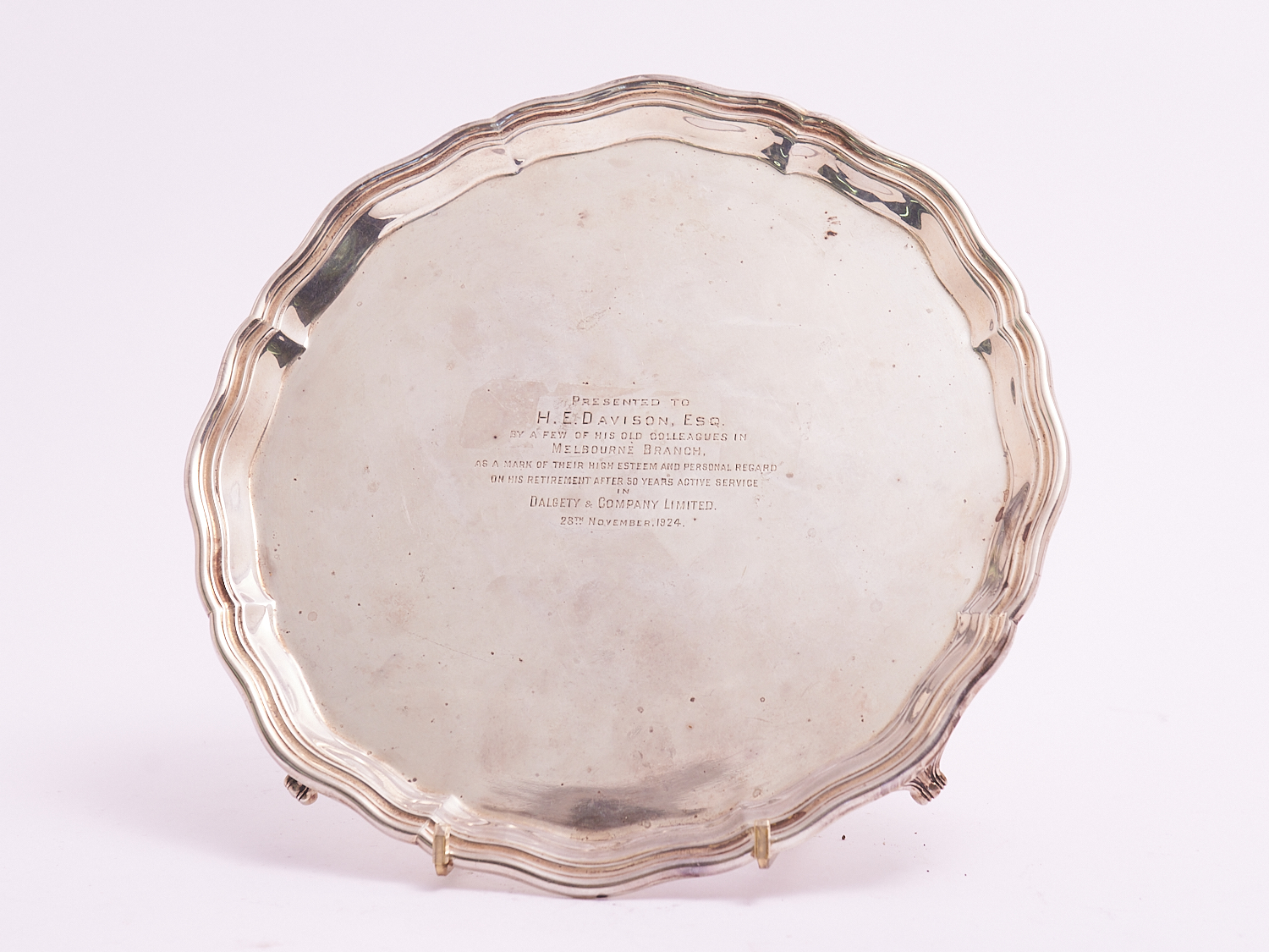 A STERLING SILVER SALVER, 600 GRAMS, LEONARD JOEL LOCAL DELIVERY: SMALL