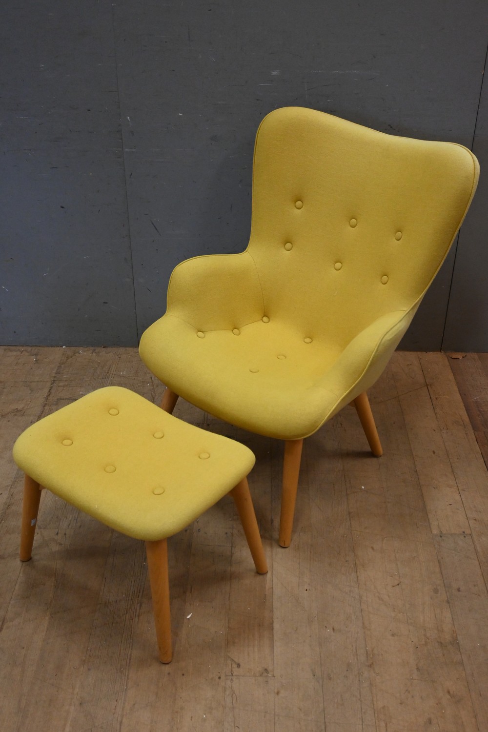 A FEATHERSTON STYLE WINGBACK WITH MATCHING OTTOMAN (A/F) ( 93H X 71W X 82D CM)