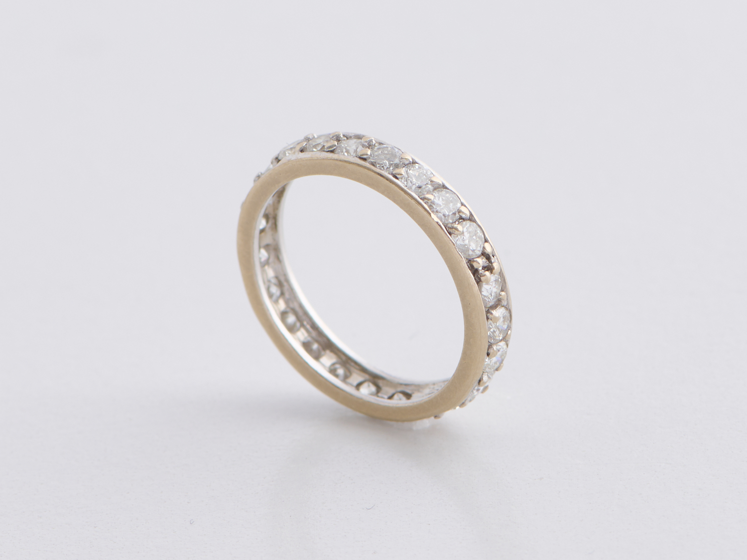 A BEAD SET DIAMOND ETERNITY RING IN 18CT WHITE GOLD, RING SIZE P, 3.60GMS