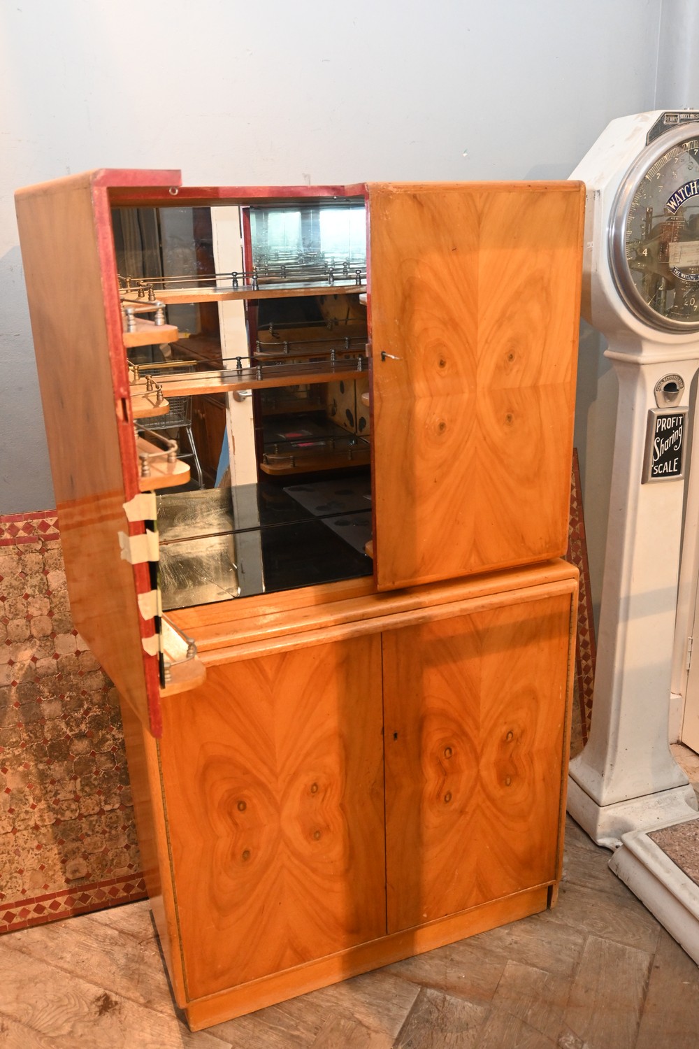 AN ART DECO DOUBLE BODIED DRINKS CABINET (A/F) (166H X 92W X 47D CM) (PLEASE NOTE THIS HEAVY ITEM MUST BE REMOVED BY CLIENTS OR CARRIERS AT THE CUSTOMERS EXPENSE. LEONARD JOEL STAFF CANNOT ASSIST CARRYING THIS ITEM)