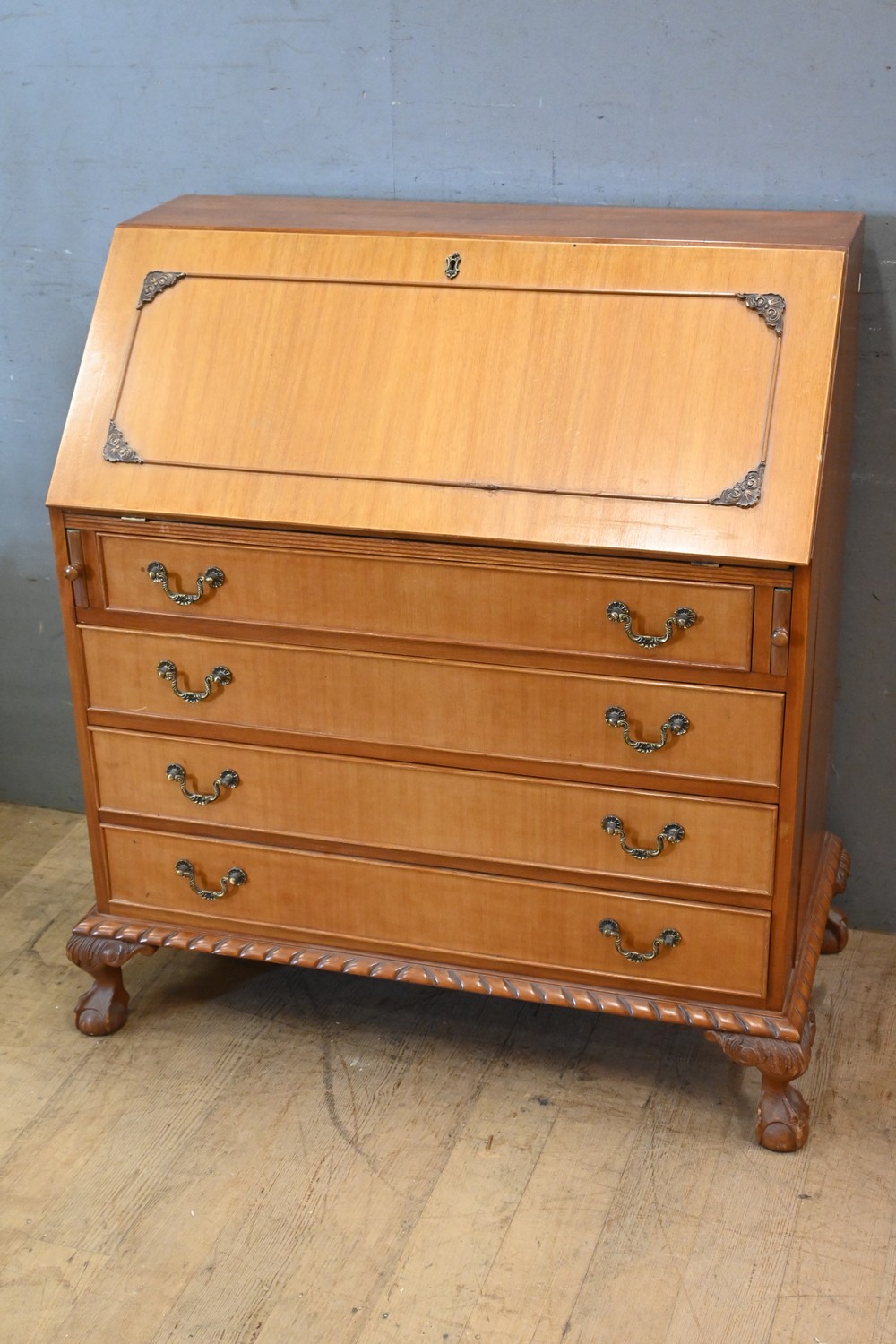 AN ANTIQUE STYLE FOUR DRAWER SECRETAIRE WITH BALL & CLAW FEET (A/F) (105H X 92W X 55D CM) (LEONARD JOEL DELIVERY SIZE: X-LARGE)