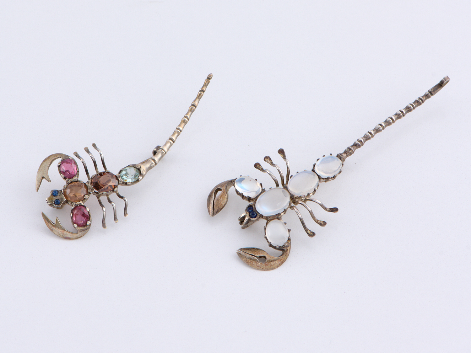 TWO VINTAGE GEM-SET SCORPION BROOCHES, LENGTHS 80MM AND 65MM