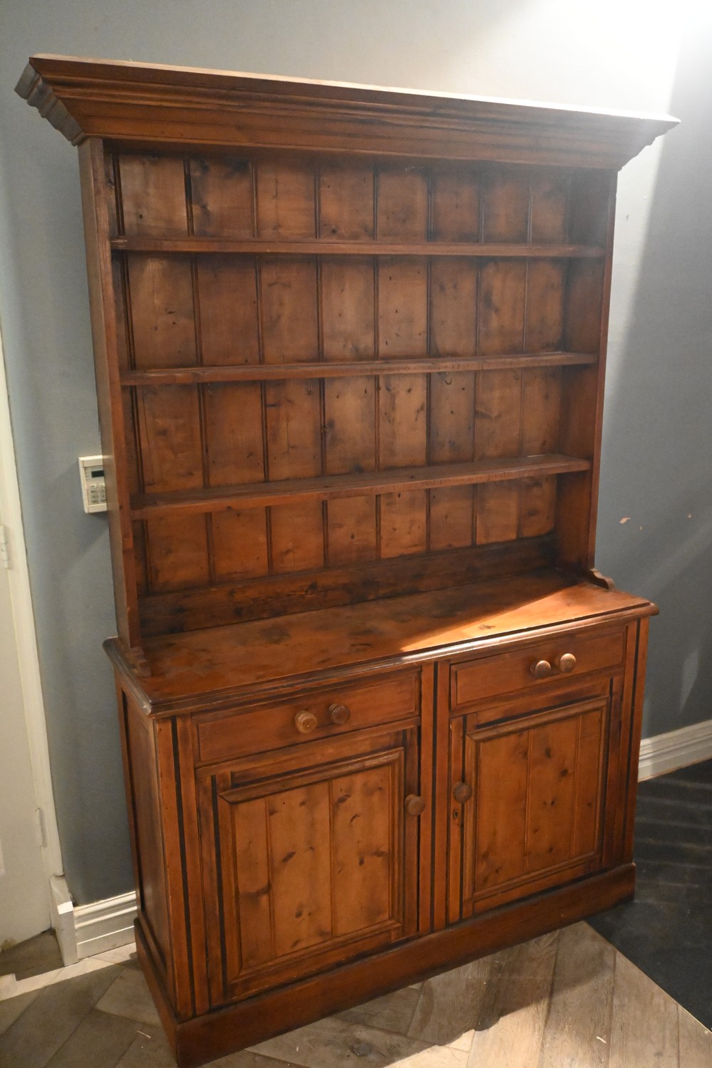 A VICTORIAN ENGLISH PINE KITCHEN DRESSER (A/F) (207H X 135W X 45D CM) (PLEASE NOTE THIS HEAVY ITEM MUST BE REMOVED BY CLIENTS OR CARRIERS AT THE CUSTOMERS EXPENSE. LEONARD JOEL STAFF CANNOT ASSIST CARRYING THIS ITEM)