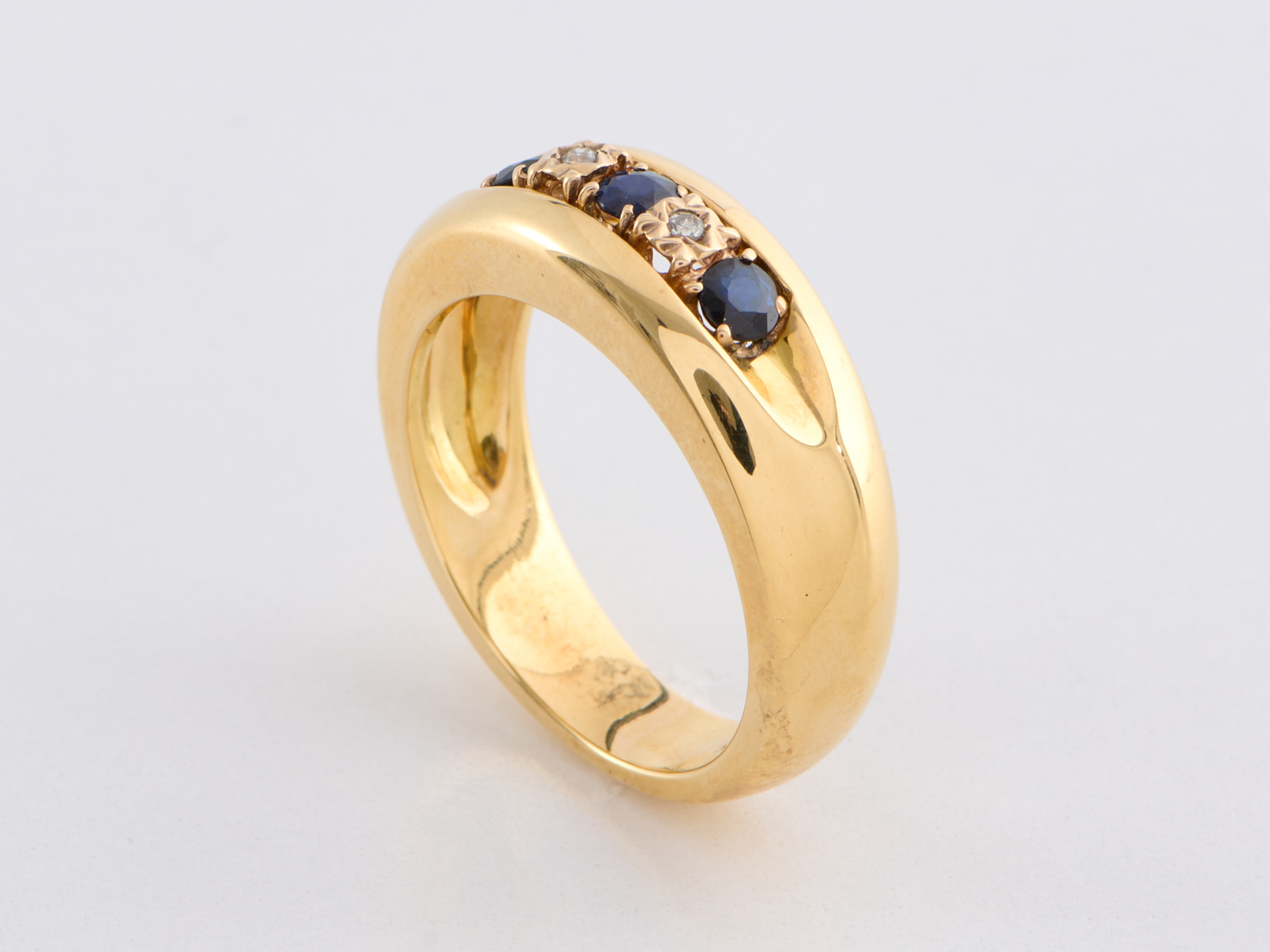 A DIAMOND AND SAPPHIRE SET RING IN 18CT GOLD, SIZE Y-Z, 18.4GMS