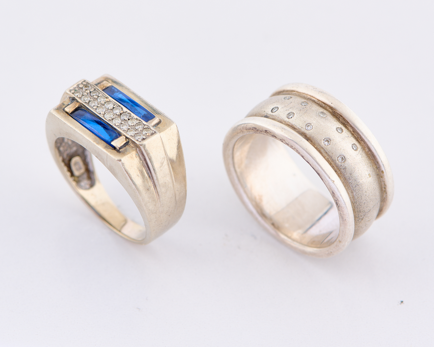A DIAMOND SET RING BY MICHAEL HILL (BOXED) TOGETHER WITH A DIAMOND SET RING IN SILVER, RING SIZES V AND X/Y