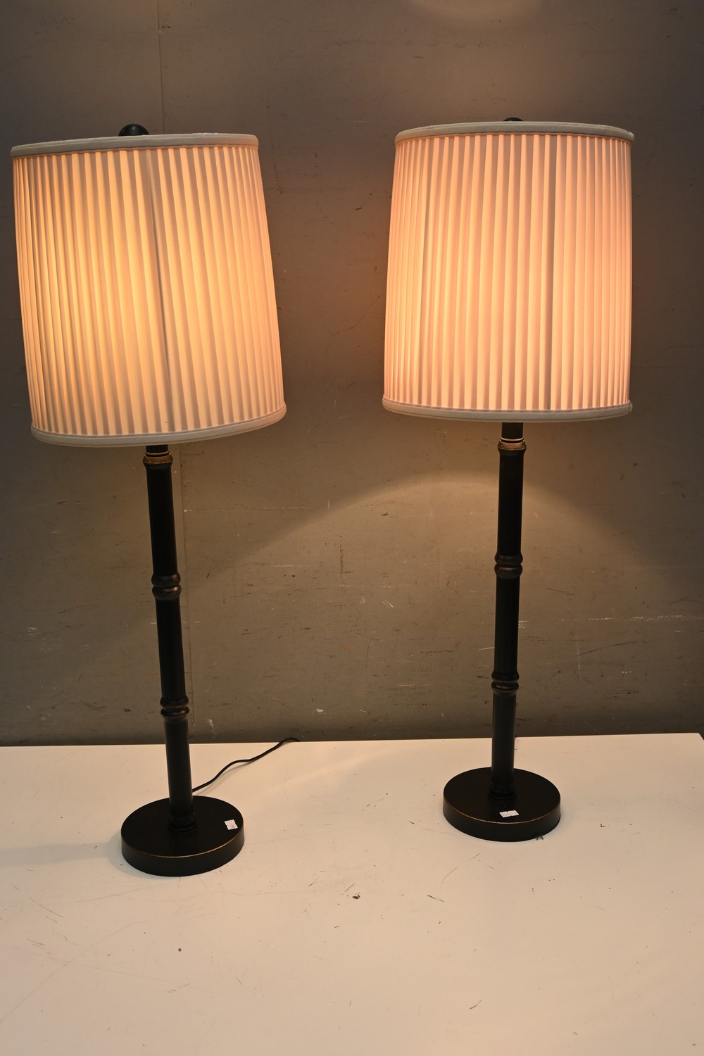 A PAIR OF EBONISED BAMBOO EFFECT TABLE LAMPS (87H CM) (LEONARD JOEL DELIVERY SIZE: MEDIUM)