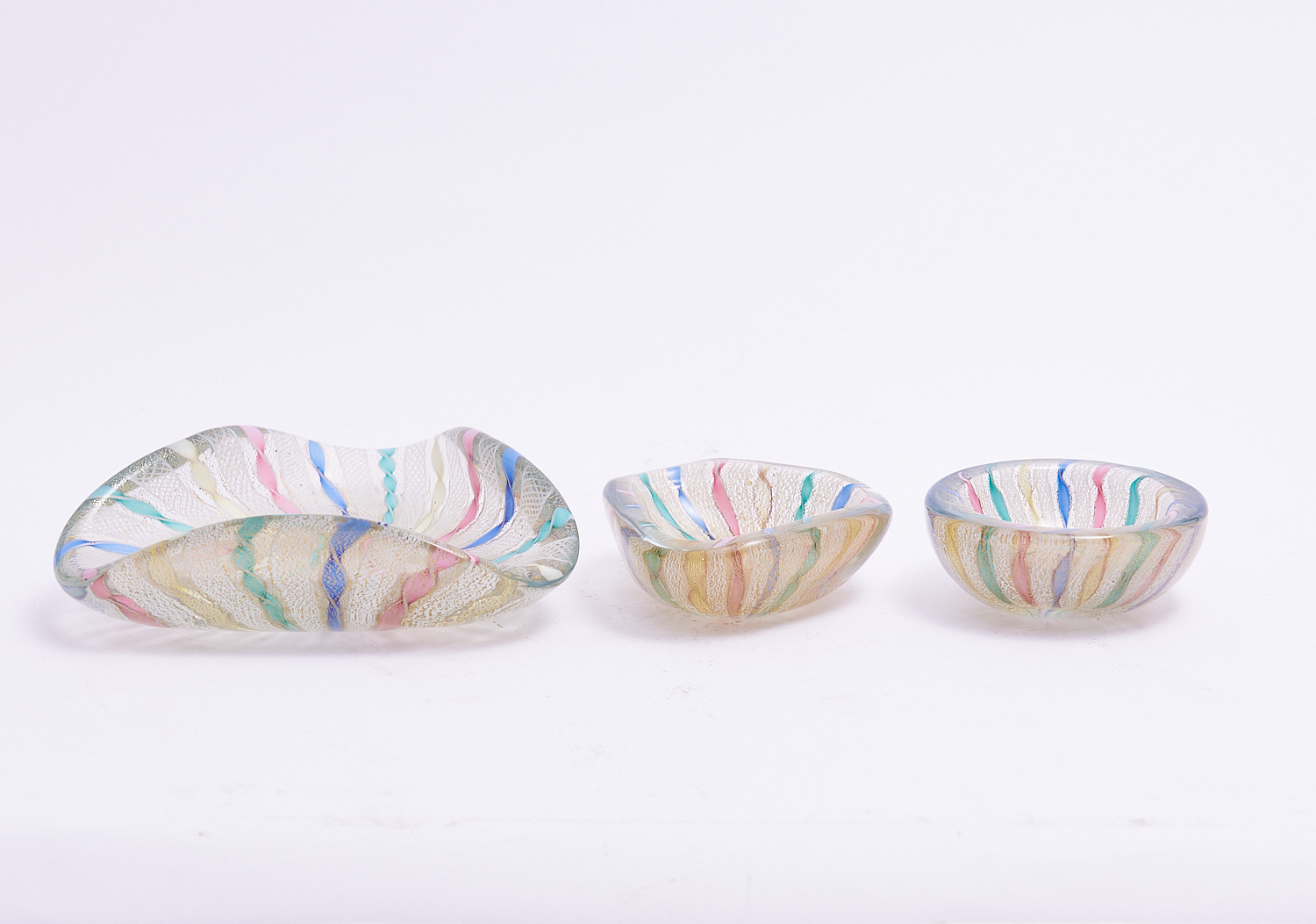 A GROUP OF THREE VENETIAN ART GLASS BOWLS (W21 CM - LARGEST), LEONARD JOEL LOCAL DELIVERY: MEDIUM