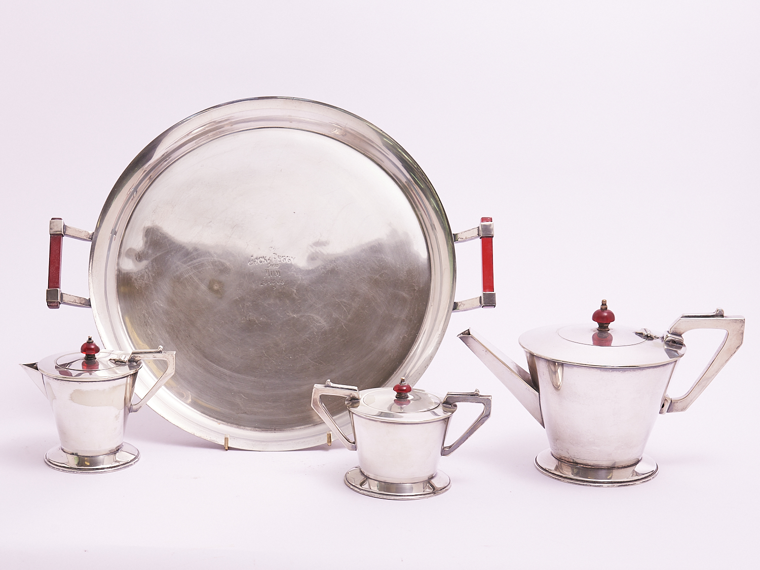AN ART DECO SILVERPLATED TEA SET ON TRAY, LEONARD JOEL LOCAL DELIVERY: MEDIUM