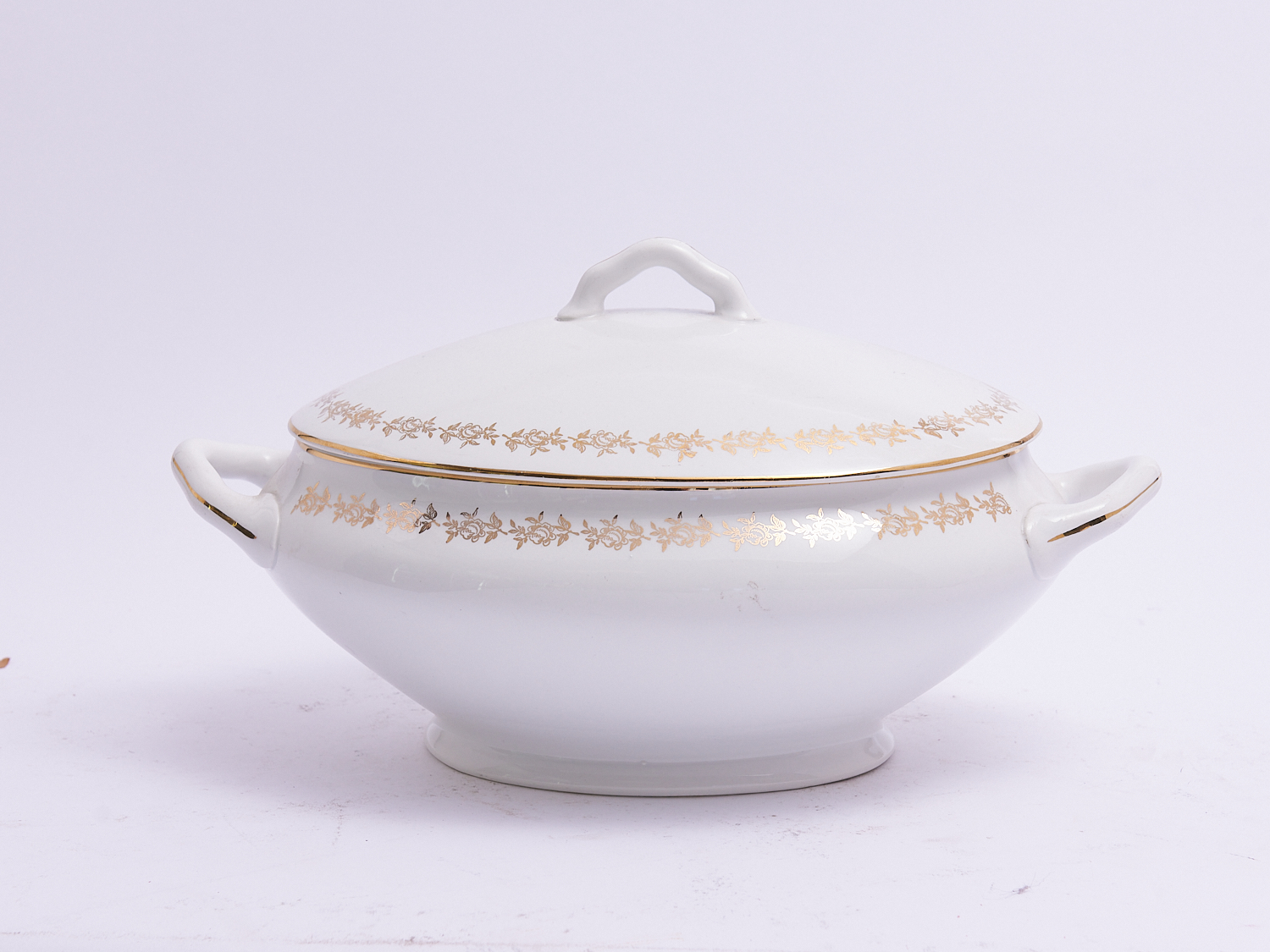 AN ITALIAN LIDDED PORCELAIN DISH (W43 CM), LEONARD JOEL LOCAL DELIVERY: MEDIUM
