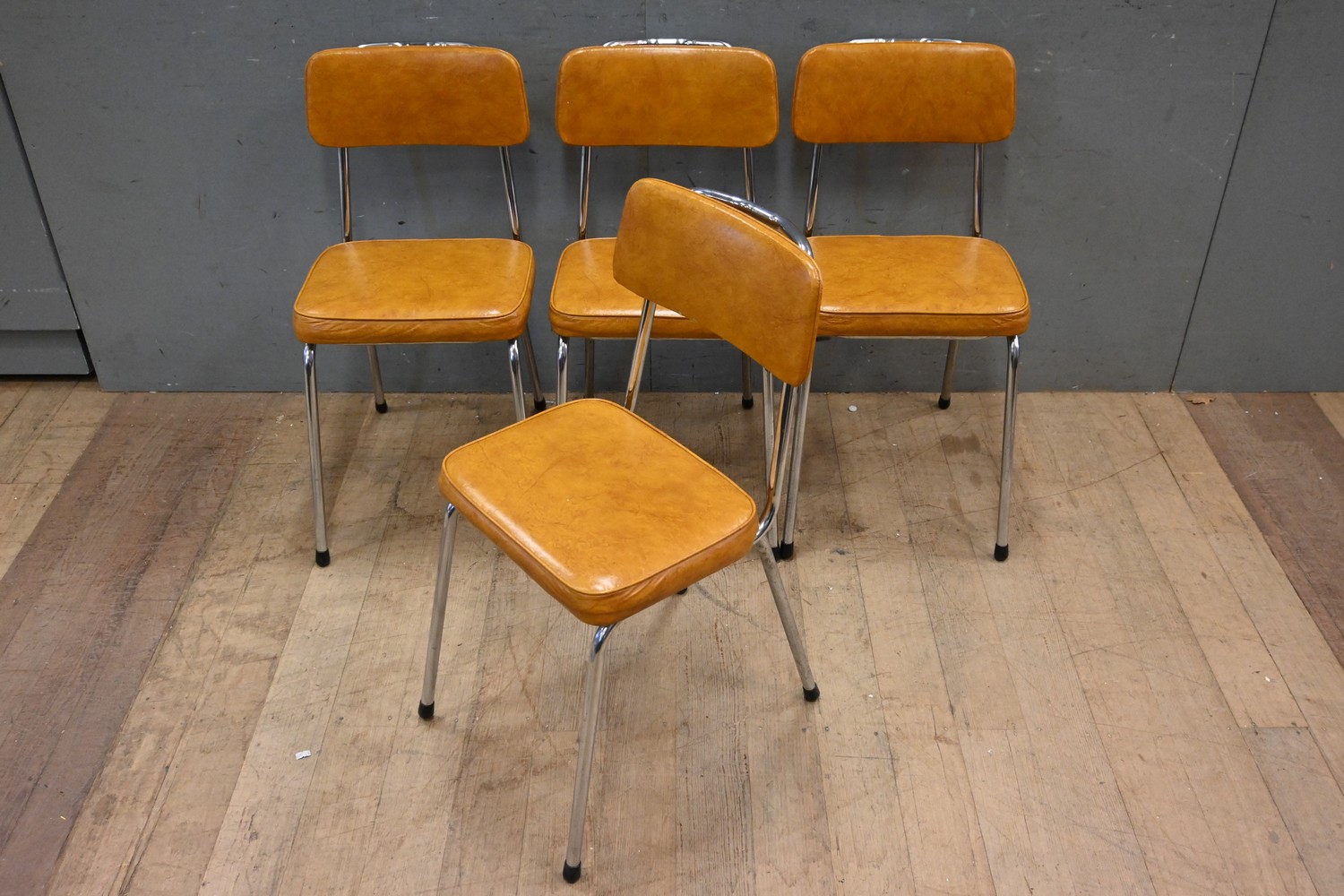 A SET OF FOUR MID CENTURY VINYL DINING CHAIRS (80H X 40W X 45D CM) (LEONARD JOEL DELIVERY SIZE: LARGE)