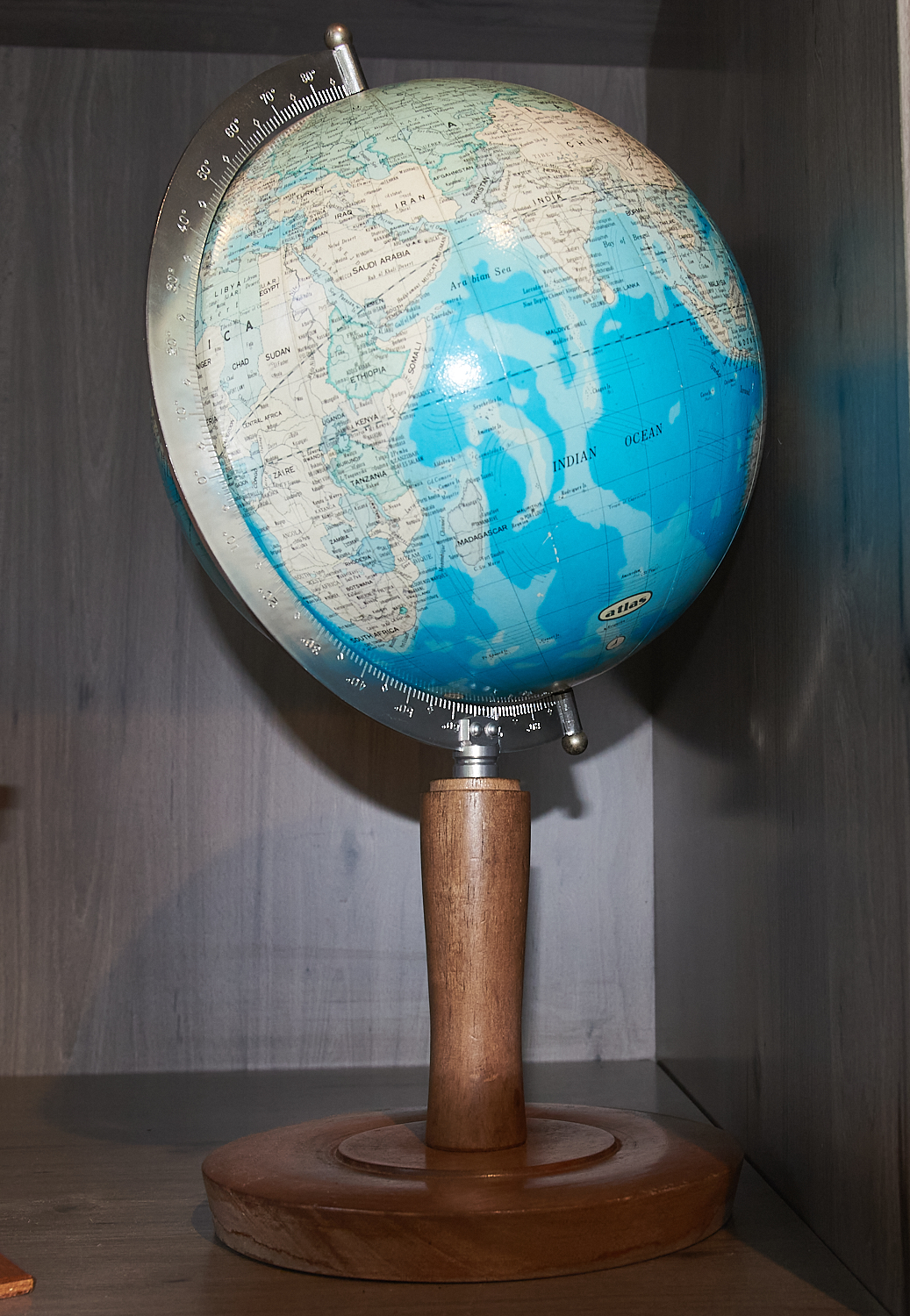 DECORATIVE WORLD GLOBE ON WOODEN STAND (H47 CM), LEONARD JOEL LOCAL DELIVERY: MEDIUM