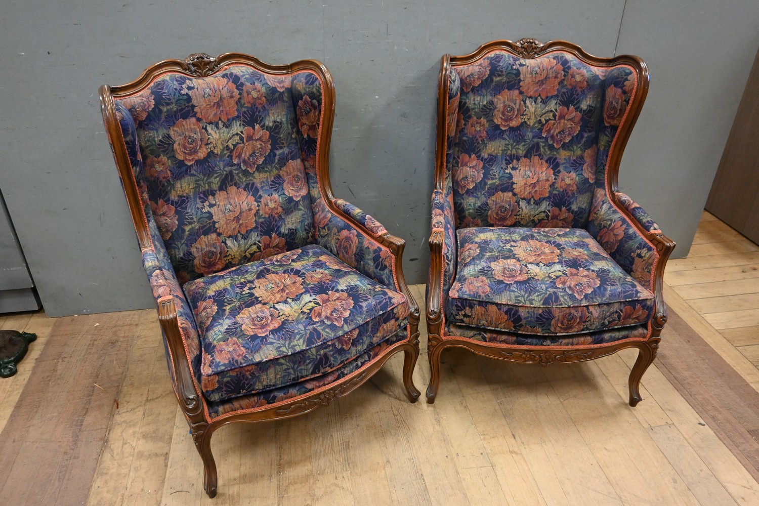 A PAIR OF LOUIS XV STYLE WINGBACK ARMCHAIRS (105H X 76W X 82D CM) (LEONARD JOEL DELIVERY SIZE: X-LARGE)