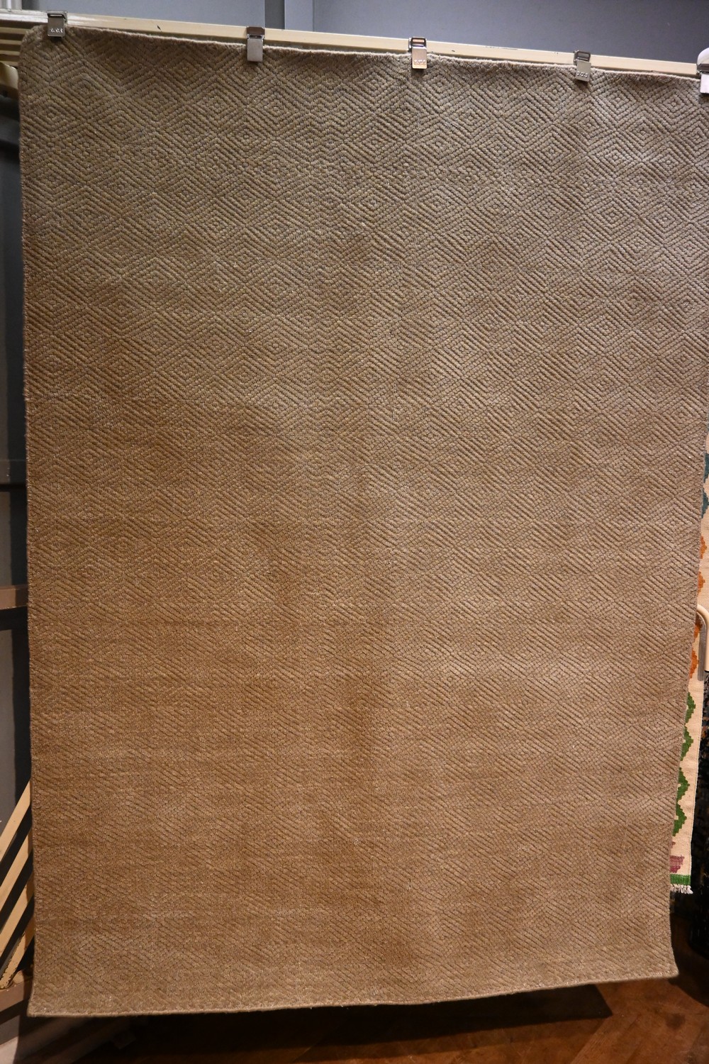 A BRAND-NEW MODERN CONTEMPORARY RUG, HANDLOOMED. SILKY TEXTURE (VISCOSE). ERASED TEXTURED PATTEN. IN CAMEL TONES. SIZE: 152 X 213 CM RRP $1,200 - ORIGIN: INDIA.