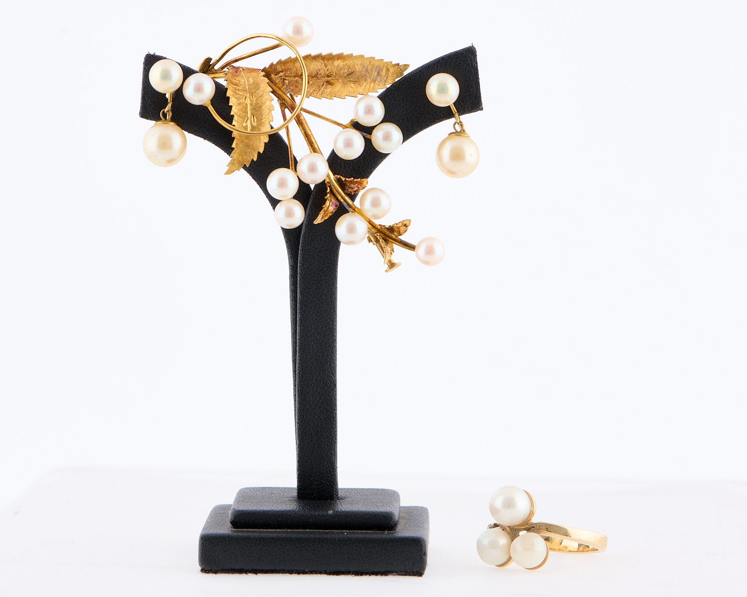 A COLLECTION OF PEARL AND FAUX (EARRINGS) PEARL JEWELLERY INCLUDING A BROOCH, RING AND EARRINGS TO SCREWBACK FITTINGS ALL IN 9CT GOLD, 15.5GMS