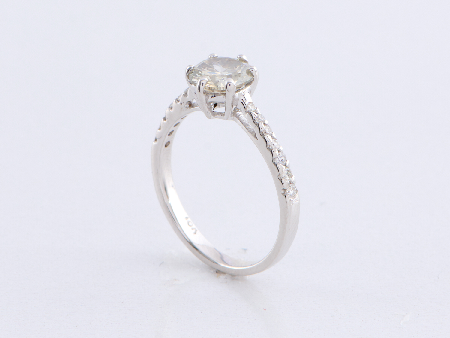A DIAMOND RING IN 18CT WHITE GOLD, THE CENTRAL DIAMOND TOTALLING 1.15CTS, WITH SHOULDERING DIAMONDS WEIGHING APPROXIMATELY 0.10CTS, RING SIZE M, WEIGHT 3.04GMS