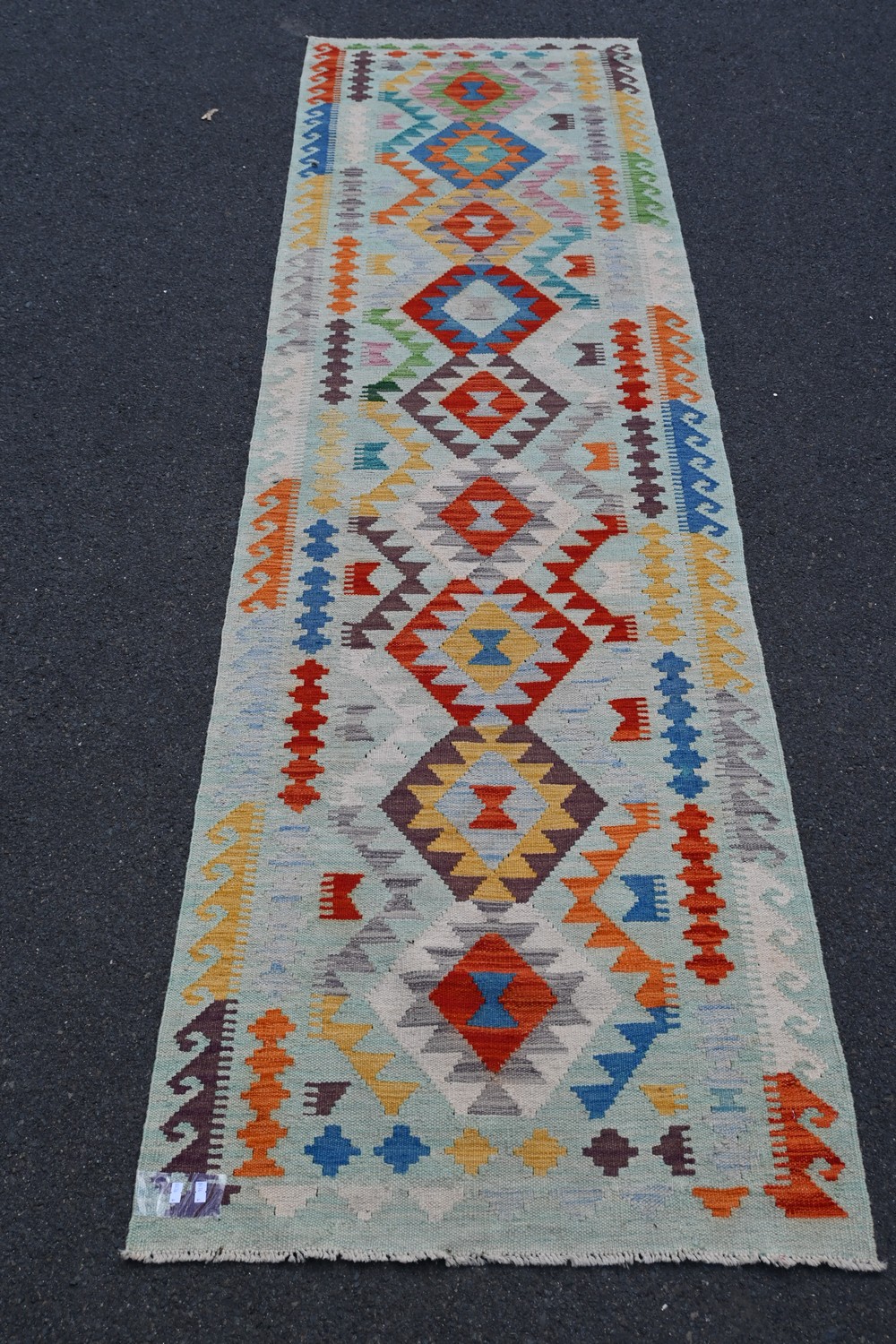 AN AFGHAN CAUCASIAN KILM RUNNER, 100% WOOL ON WOOL, VEGETABLE DYES, REVERSEABLE WITH CAUCASIAN DESIGN (280 X 80 CM) (LEONARD JOEL DELIVERY SIZE: MEDIUM)