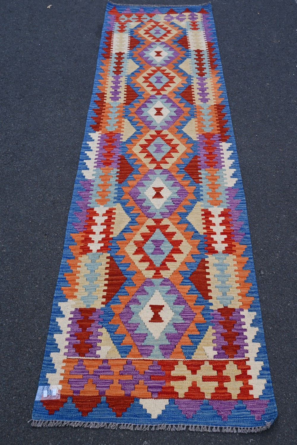 AN AFGHAN CAUCASIAN KILM RUNNER, 100% WOOL ON WOOL, VEGETABLE DYES, REVERSEABLE WITH CAUCASIAN DESIGN (300 X 81 CM) (LEONARD JOEL DELIVERY SIZE: MEDIUM)