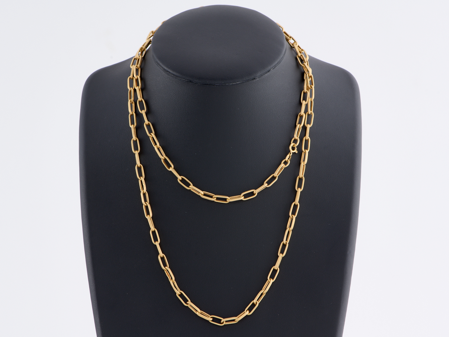 A NECKLACE IN 18CT GOLD, LENGTH 920MM, THE LINKS 5MM X 4MM, 13.7GMS