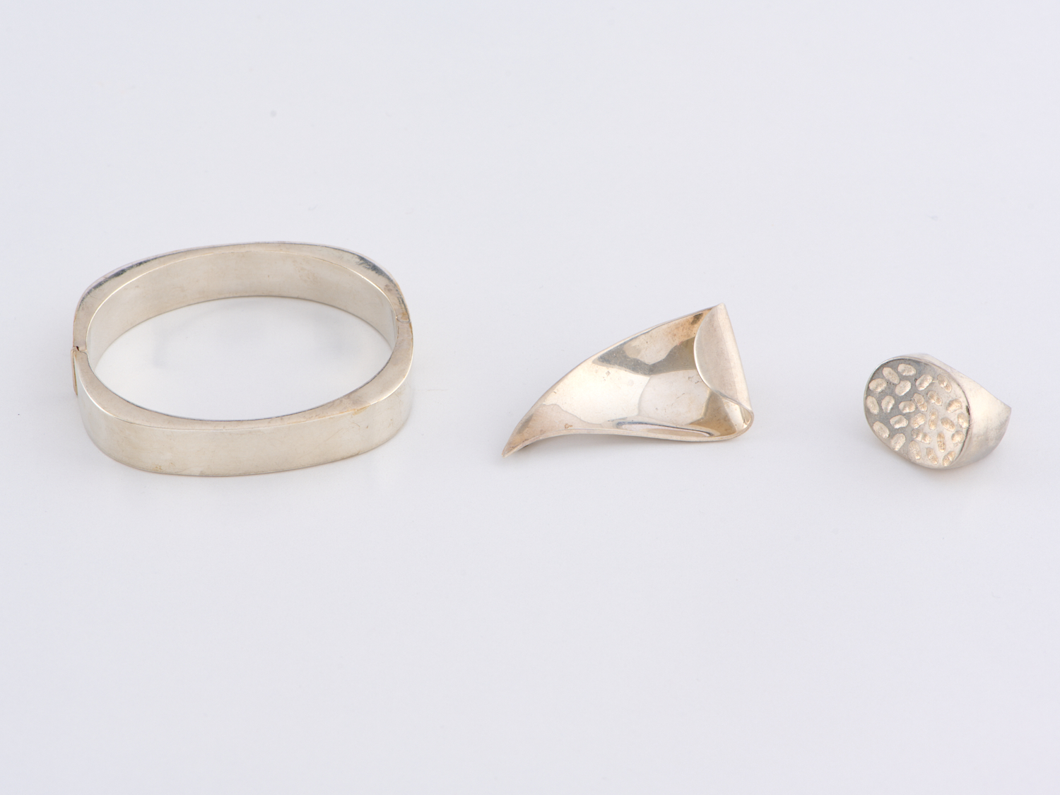 A COLLECTION OF FINDINGS IN STERLING SILVER, INCLUDING A BANGLE AND BROOCH