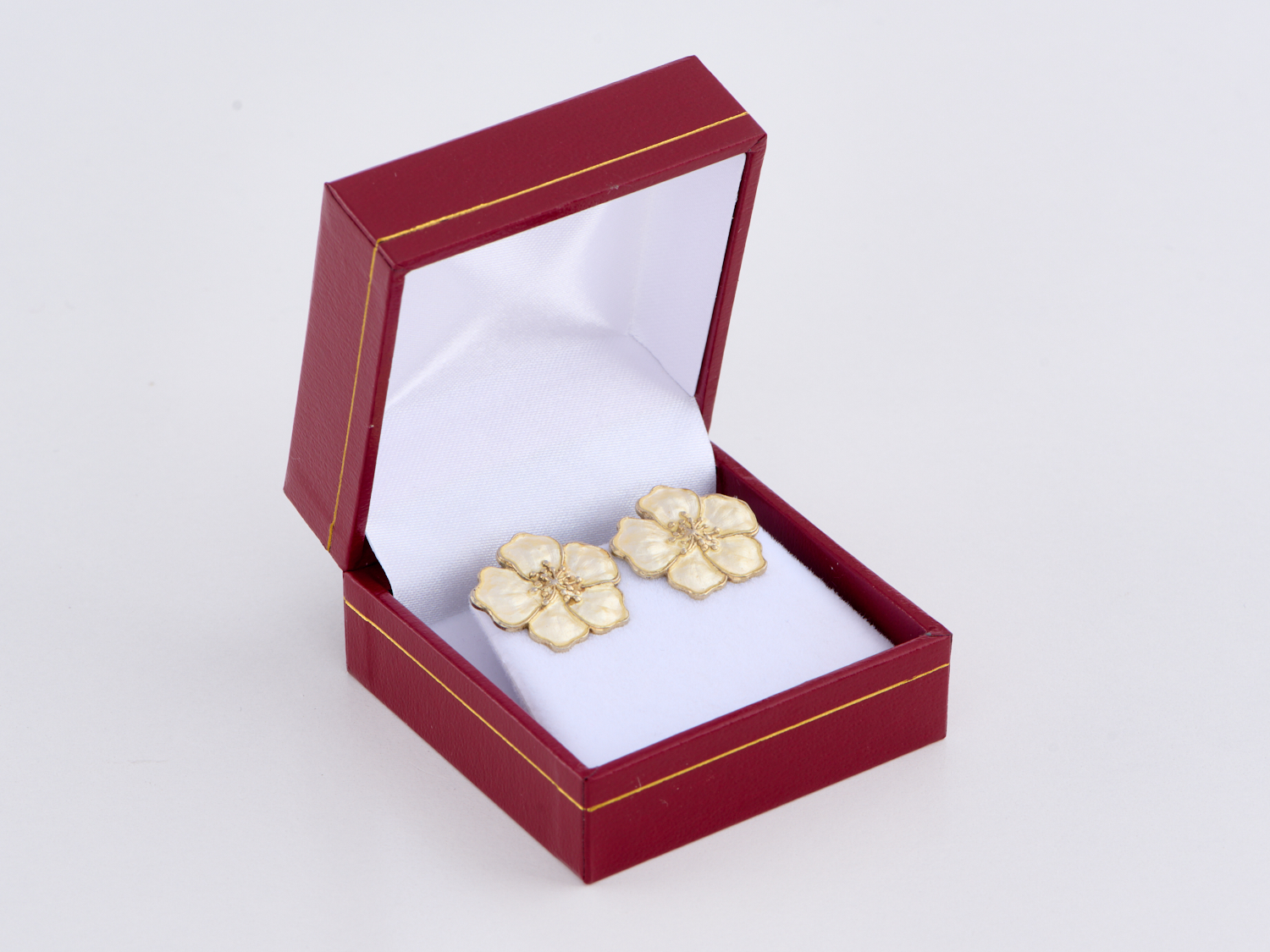 A PAIR OF ENAMELLED SILVER GILT DANISH CLIP ON EARRINGS, DIAMETER 12MM, (BOXED)