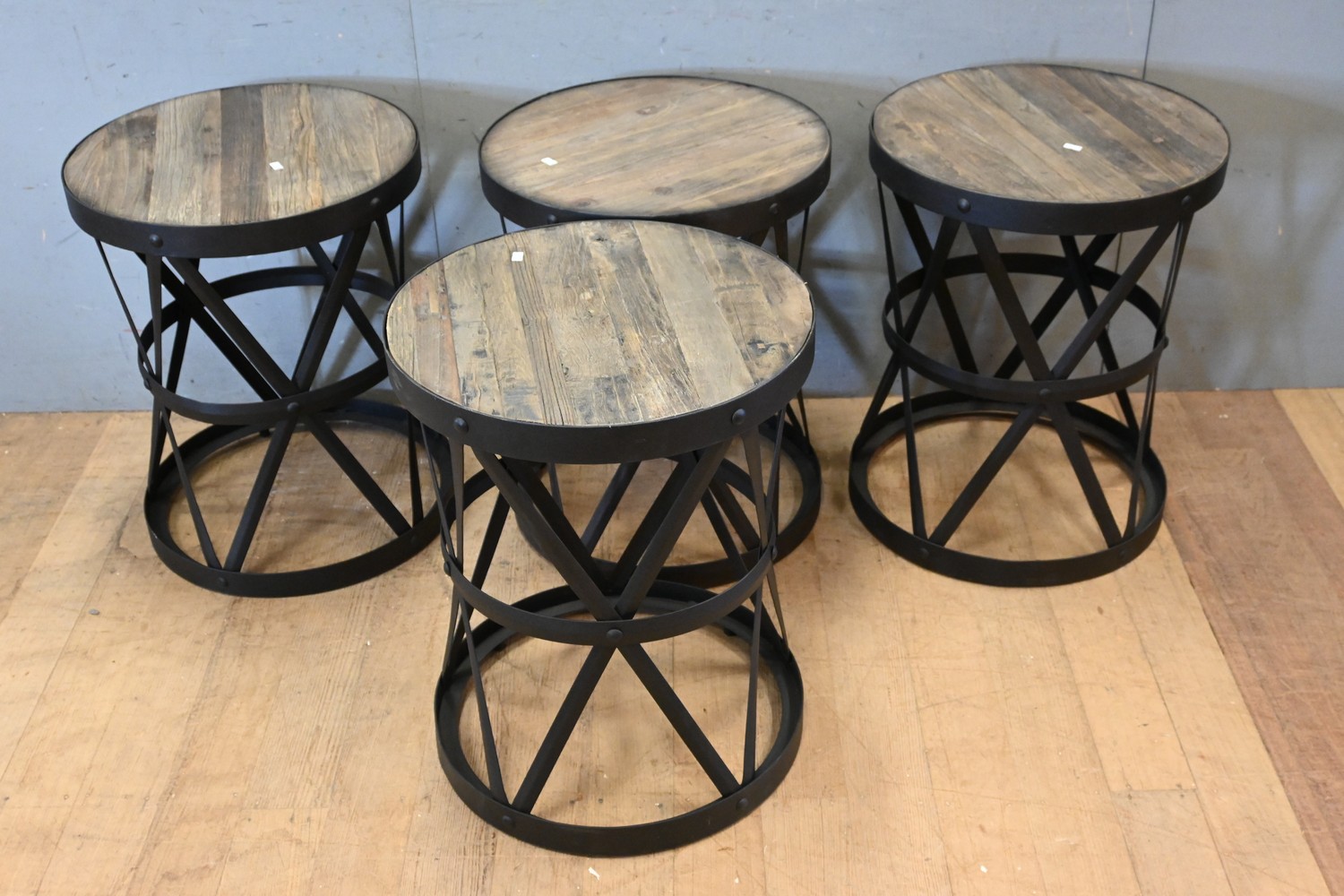 A SET OF FOUR METAL AND TIMBER CIRCULAR SIDE TABLES (61H X 49D CM) (PLEASE NOTE THIS HEAVY ITEM MUST BE REMOVED BY CLIENTS OR CARRIERS AT THE CUSTOMERS EXPENSE. LEONARD JOEL STAFF CANNOT ASSIST CARRYING THIS ITEM)