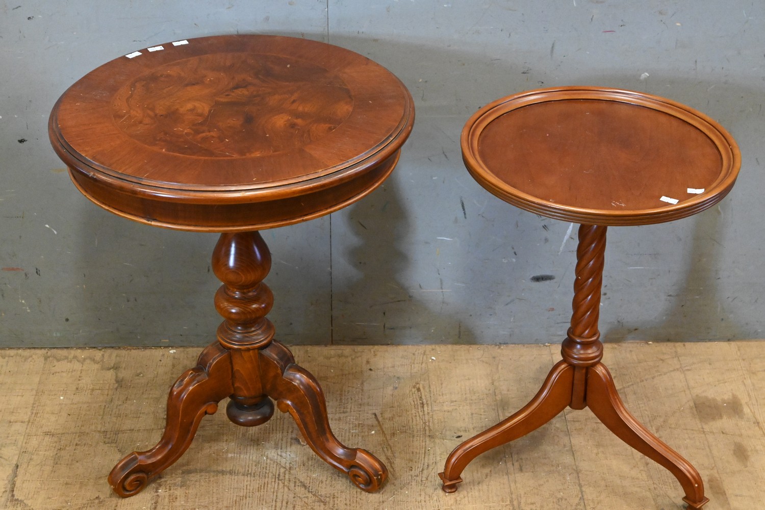 TWO WINE TABLES (A/F) (60H X 51D CM) (LEONARD JOEL DELIVERY SIZE: MEDIUM)