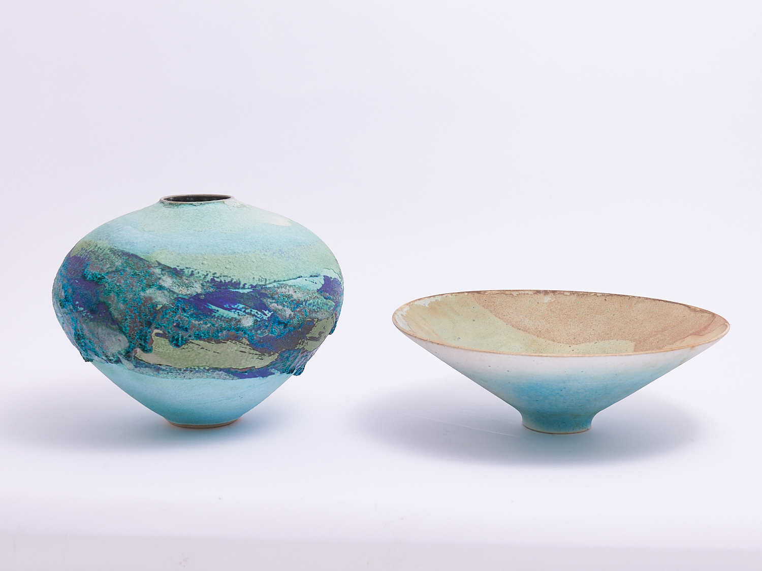 A TASMANIAN POTTERY VASE TOGETHER WITH BOWL, LEONARD JOEL LOCAL DELIVERY: MEDIUM