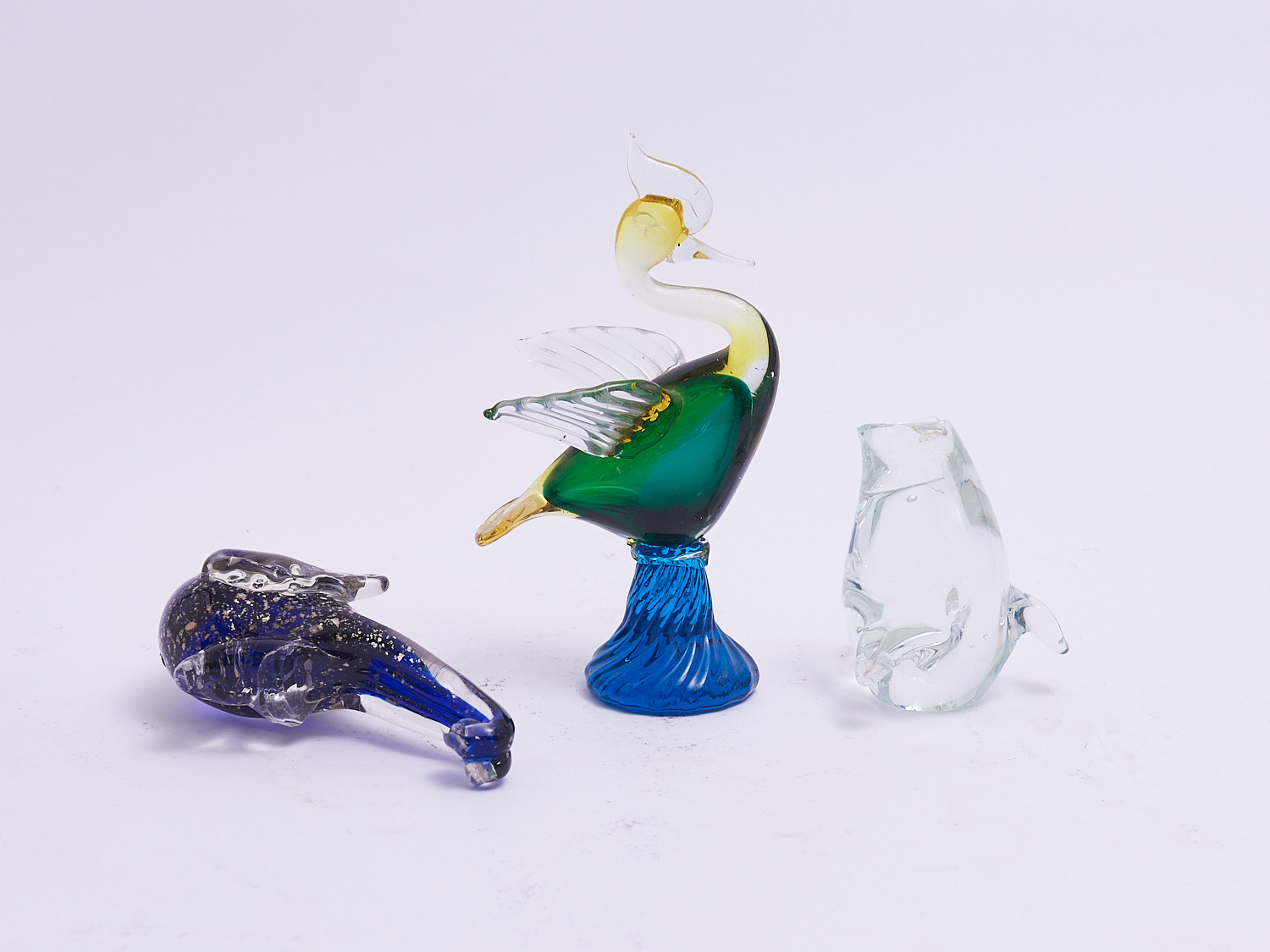 TWO MURANO GLASS BIRDS (A/F) (TALLEST - H22 CM), LEONARD JOEL LOCAL DELIVERY: MEDIUM