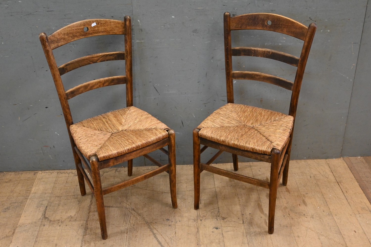 A PAIR OF LADDER BACK DINING CHAIRS WITH RUSH SEATS (89H X 41W X 40D CM) (LEONARD JOEL DELIVERY SIZE: LARGE)