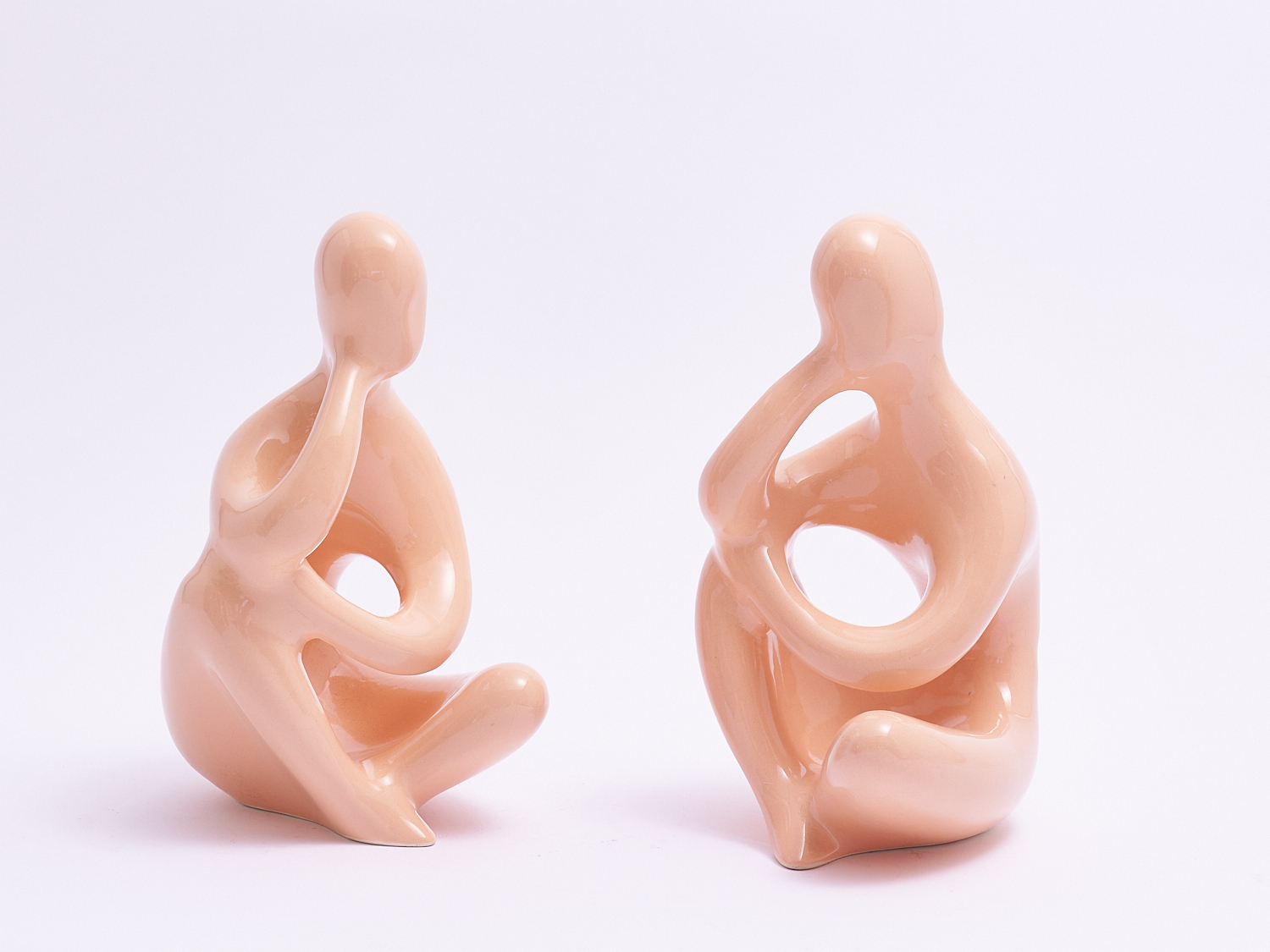 A PAIR OF PEACH GLAZED ELLIS POTTERY CERAMIC FIGURES, LEONARD JOEL LOCAL DELIVERY: SMALL