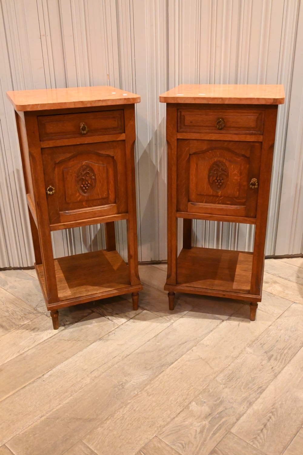 A PAIR OF FRENCH STYLE MARBLE TOP CABINETS (86H X 41W X 42D CM) (LEONARD JOEL DELIVERY SIZE: LARGE)