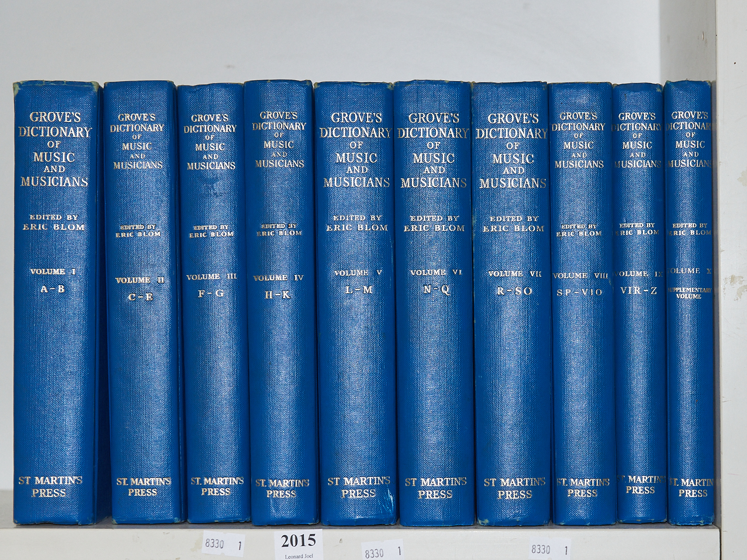 GROVES DICTIONARY OF MUSIC AND MUSICIANS, TEN VOLUMES, ED. ERIC BLACK, LEONARD JOEL LOCAL DELIVERY: MEDIUM