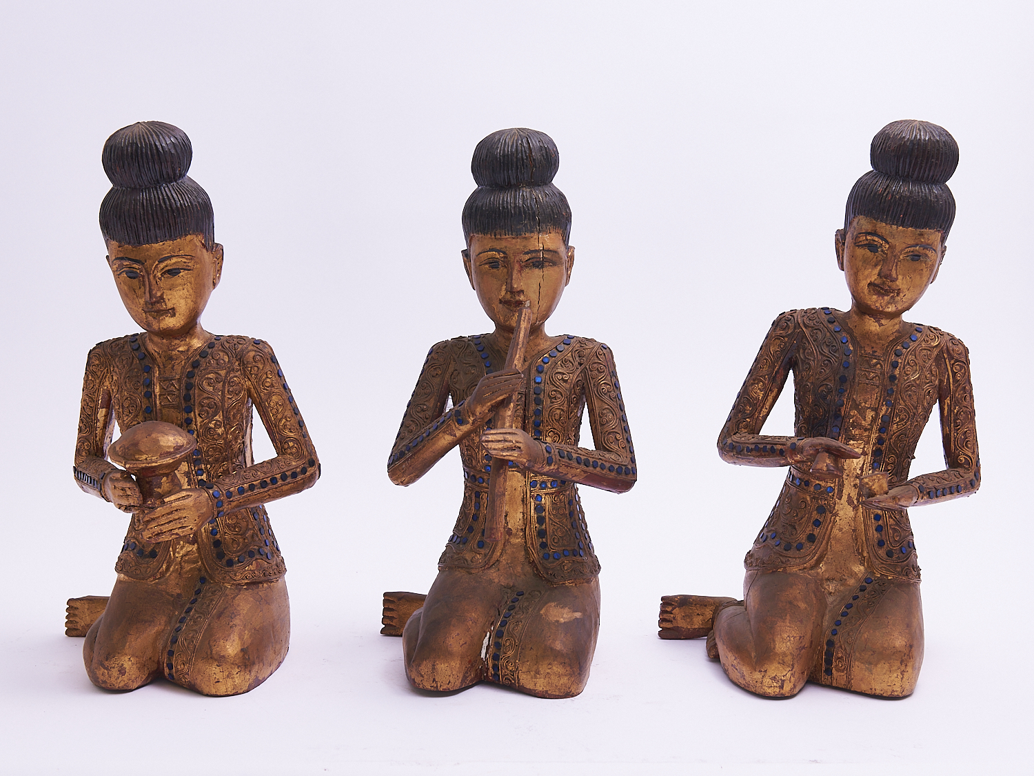 THREE BURMESE CARVED WOOD PRAYING FIGURES, LEONARD JOEL LOCAL DELIVERY: MEDIUM