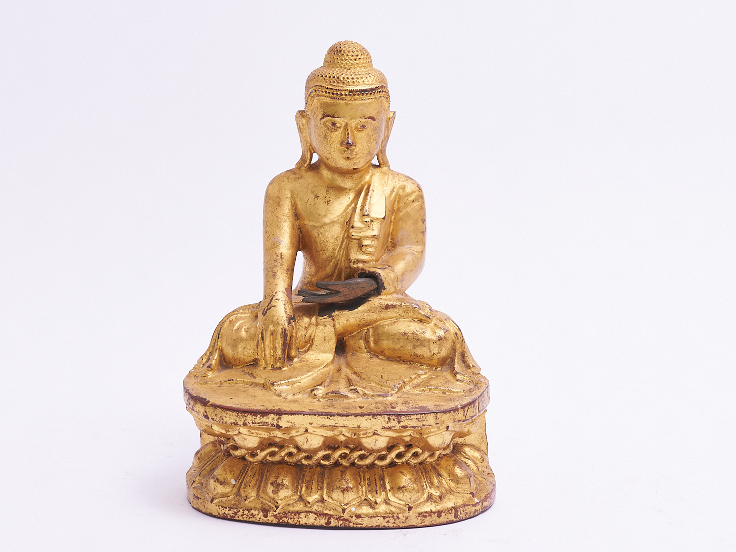 A BURMESE GILT WOOD FIGURE OF BUDDAH, MANDALAY PERIOD, LEONARD JOEL LOCAL DELIVERY: MEDIUM